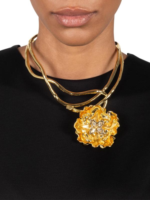 قلادة Jardin المطلية بالذهب عيار 14 قيراطًا والكريستال على شكل وردة
