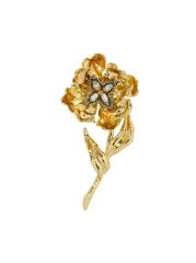 دبوس وردي مرصع بالكريستال ومطلي بالذهب عيار 14 قيراط من جاردين