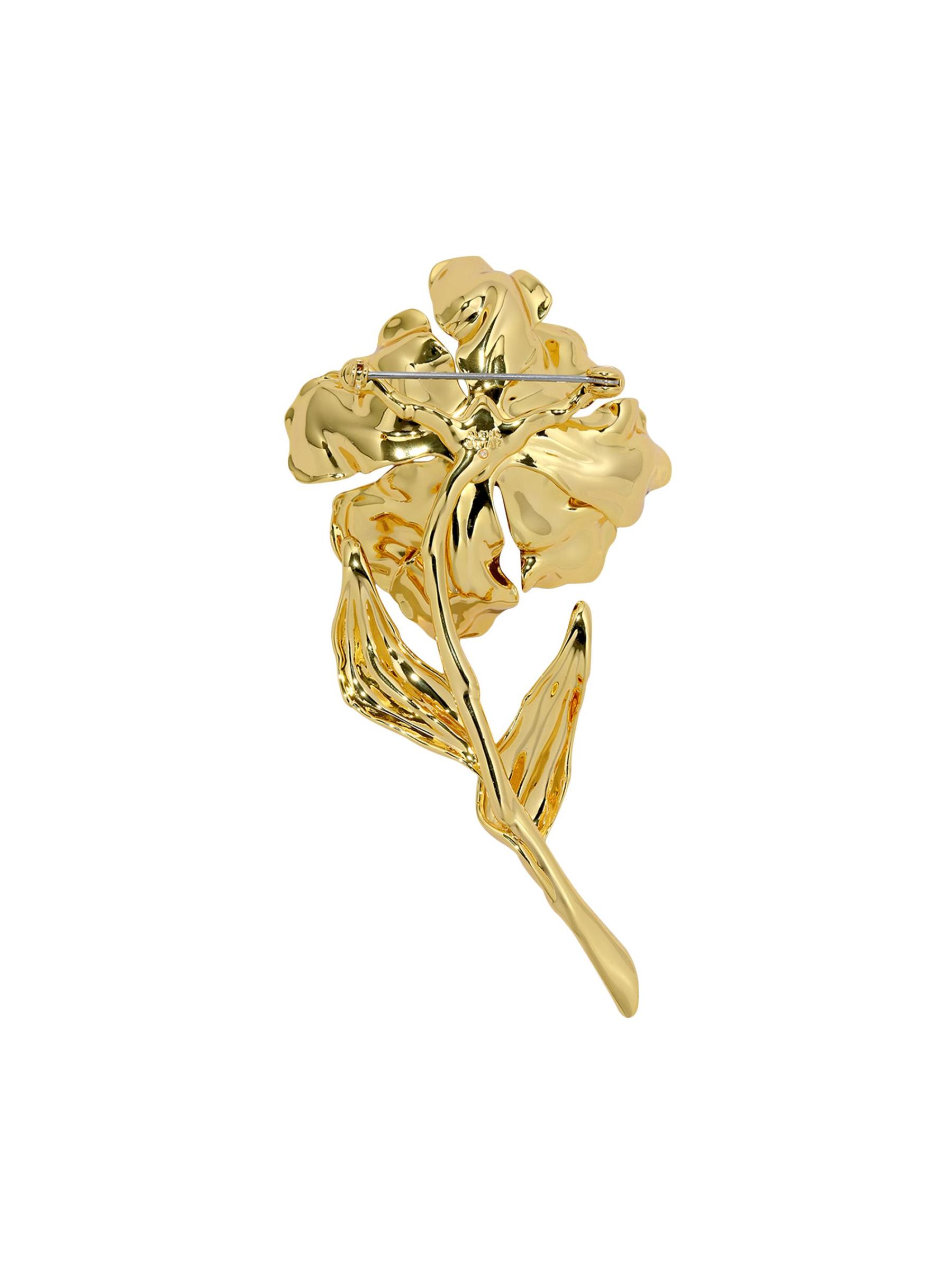 من مجموعة جاردين. صُنع دبوس Jardin Rose من Alexis Bittar، المنحوت على شكل وردة جذعية، من النحاس المطلي بالذهب عيار 14 قيراطًا مع كريستالات لامعة مقطوعة على شكل ماركيز في المنتصف.