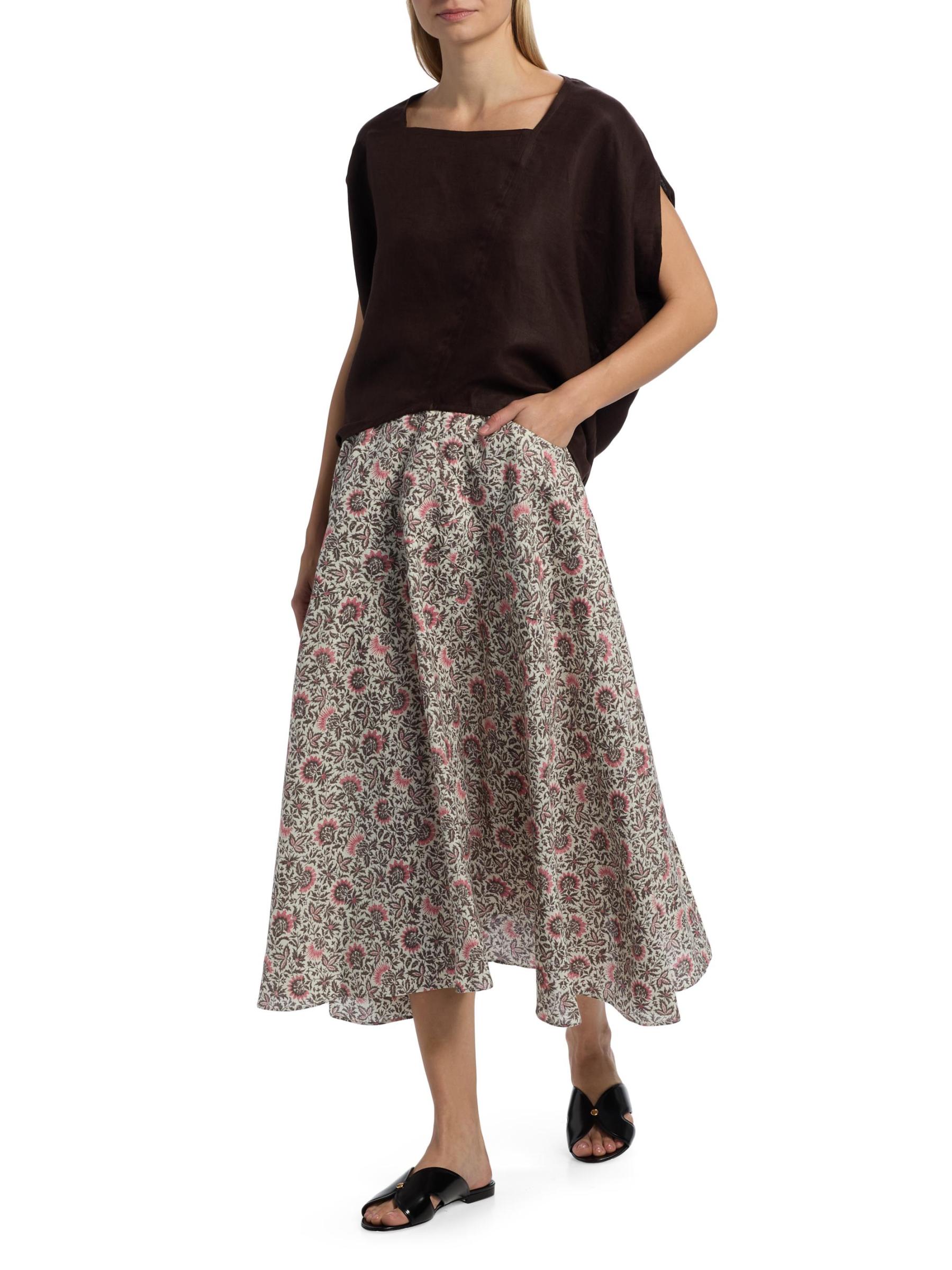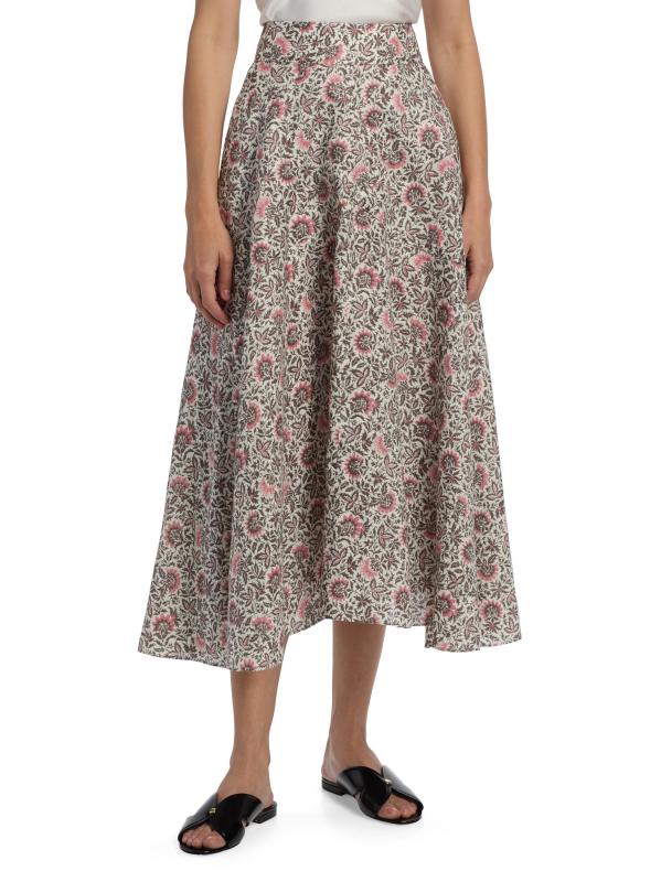تُضفي تنورة «جايا» المتوسطة من لورو بيانا، المصنوعة من الكتان الإيطالي الخفيف، لمسة من الأناقة على شكل حرف A مع خصر مُحاط وطبعة ساحرة.