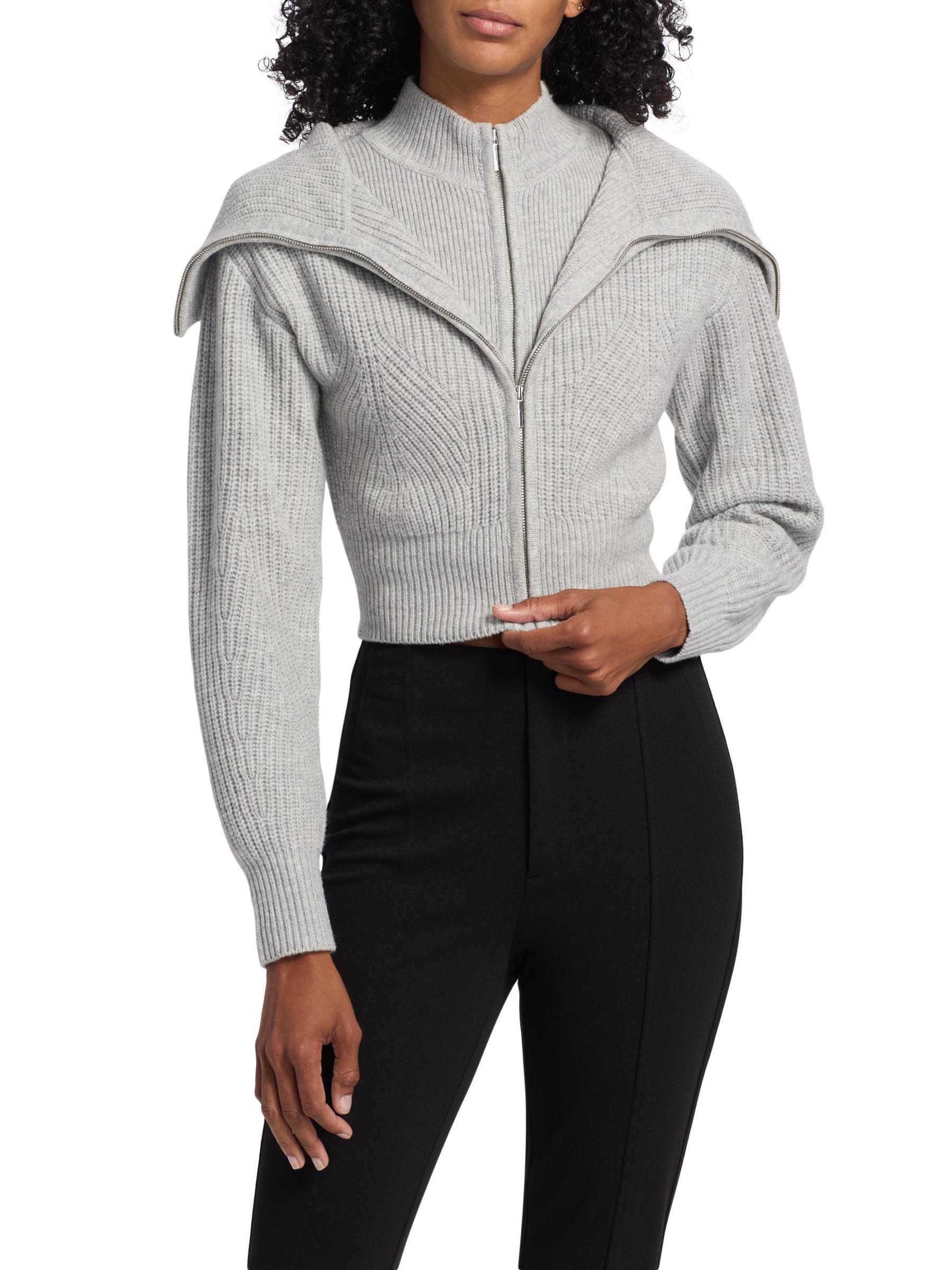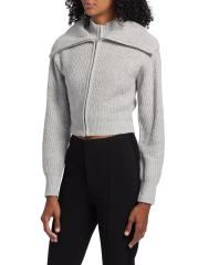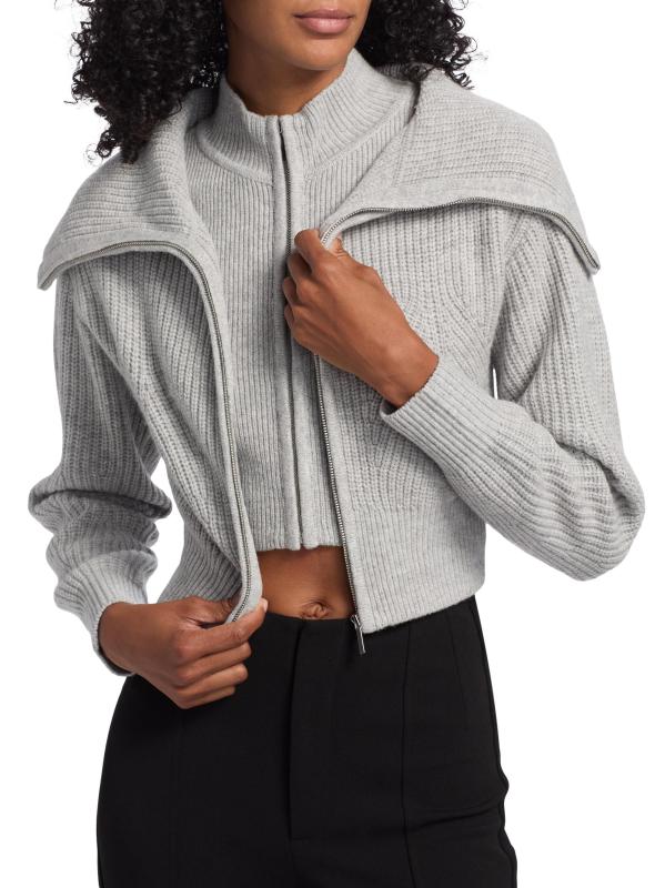 سترة Jayne المحبوكة المضلعة من Derek Lam 10 Crosby مصنوعة من الصوف بتصميم متعدد الطبقات.رقبة مدورة وهمية أكمام طويلة إغلاق بسحّاب أمامي صوف بنسبة 100% تنظيف جاف مستوردة