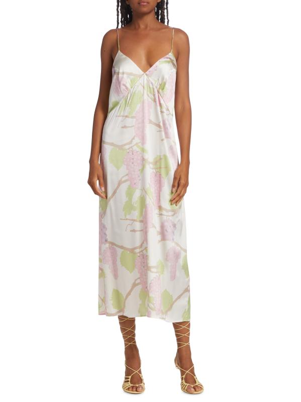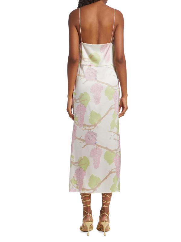 يُزيّن فستان جيني ميدي ذو القصّة المتحيزة من BERNADETTE، المحبوك من الحرير اللامع، بطبعة زهور كبيرة مزخرفة وظهر مربع مفتوح.رقبة واسعة على شكل حرف V أحزمة سباغيتي افتح المربع الخلفي نمط بلوفر حرير بنسبة 100% تنظيف جاف مستوردة