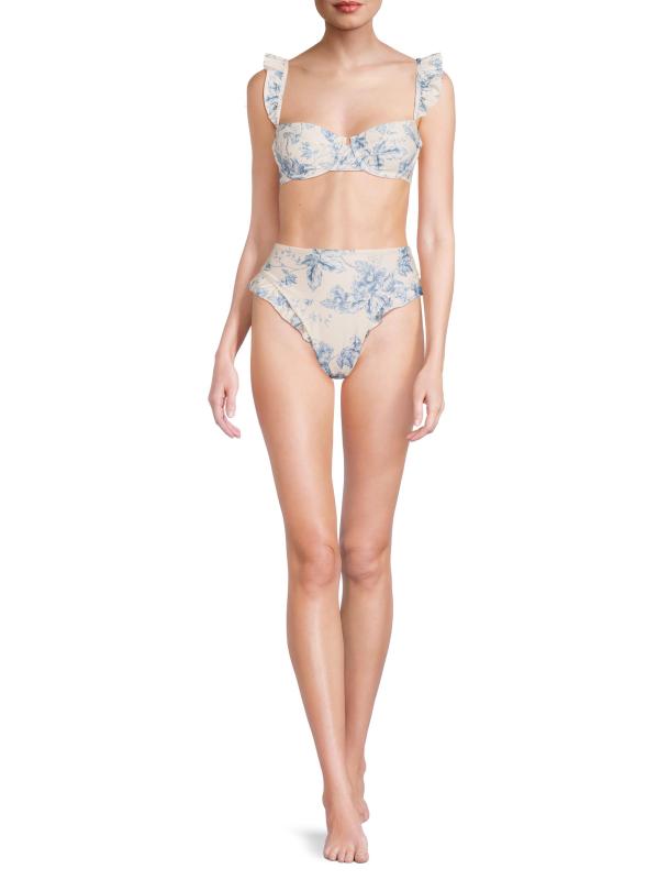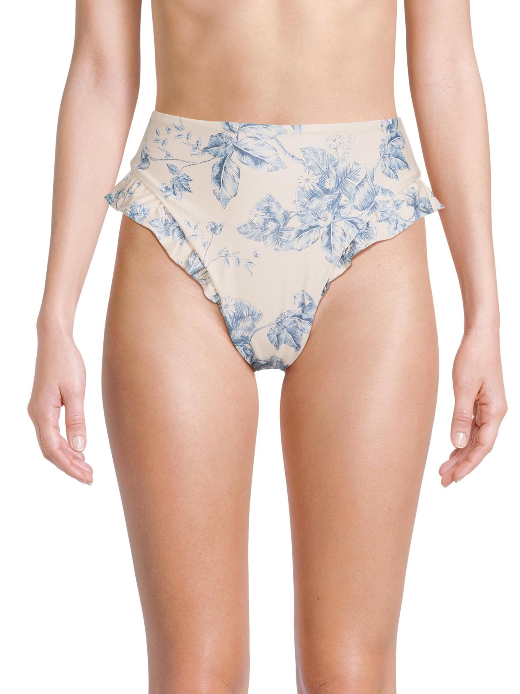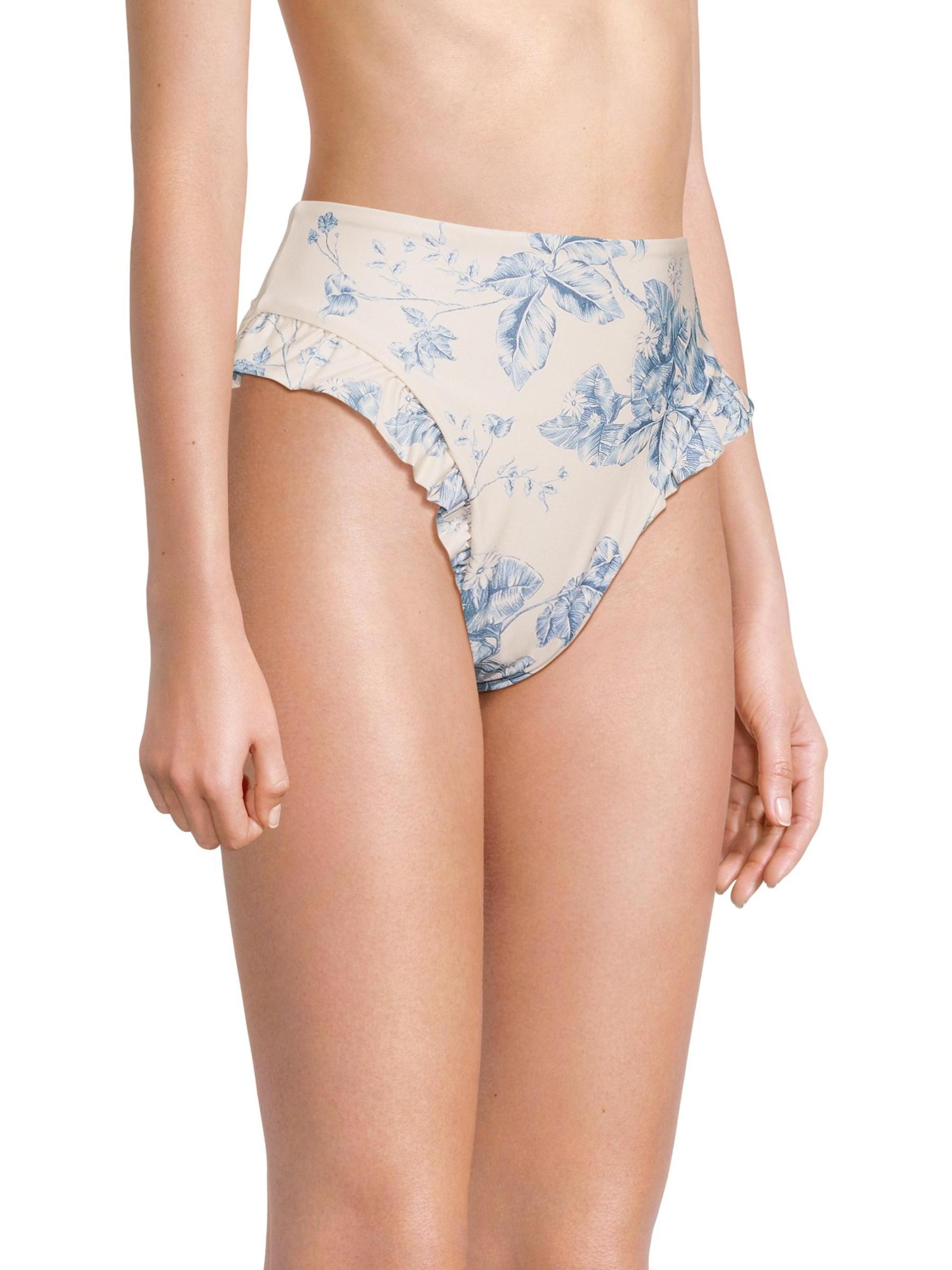 يتميز الجزء السفلي من البيكيني Jenginbre من Agua by Agua Bendita بنقشة الأزهار الرقيقة، حيث تم تصميمه للحصول على ارتفاع أعلى وتم تصميمه بزخرفة مكشكشة عند فتحات الساق.