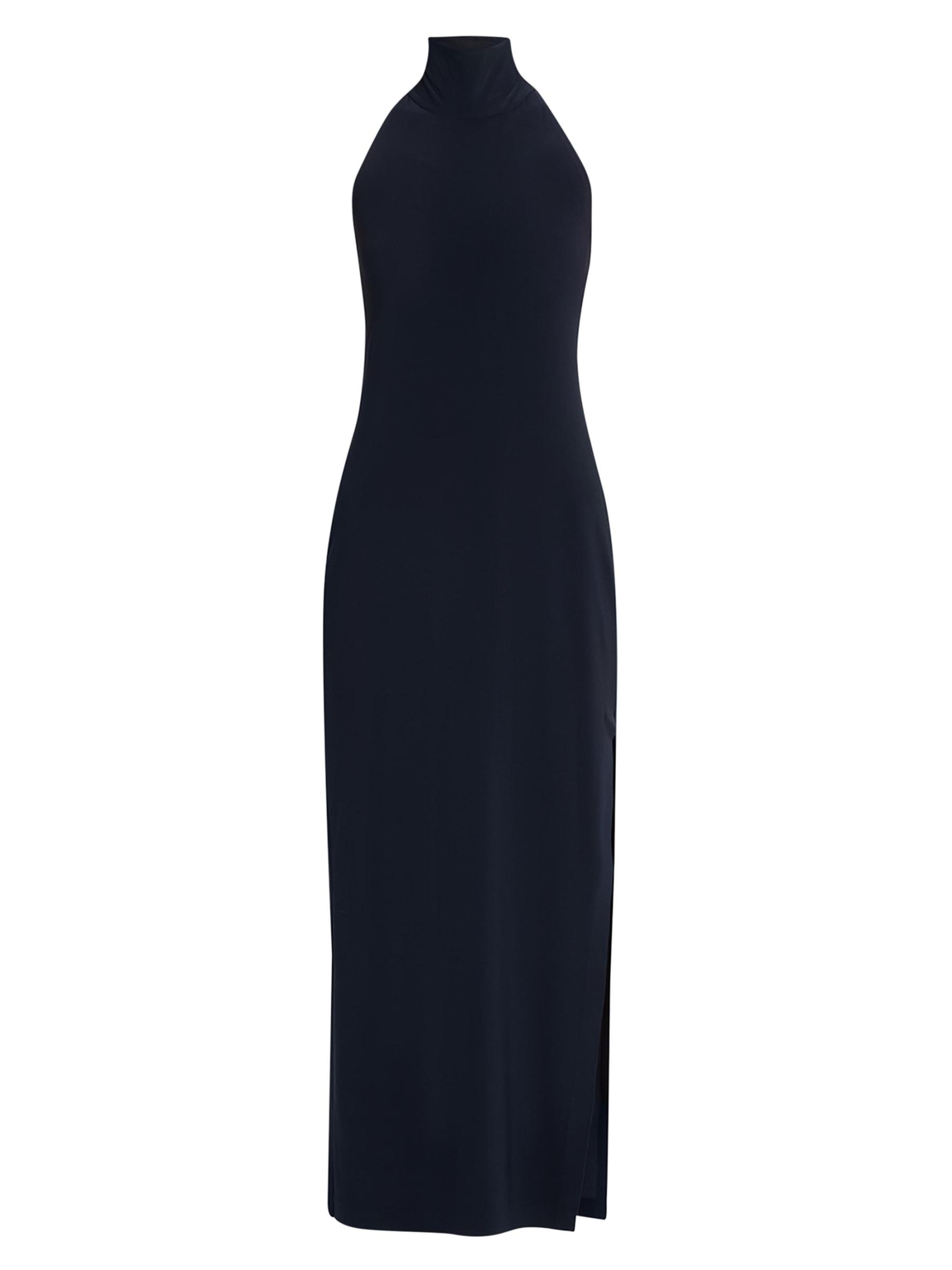 فستان جيرسي برقبة هالتيرسيه بفتحة جانبية