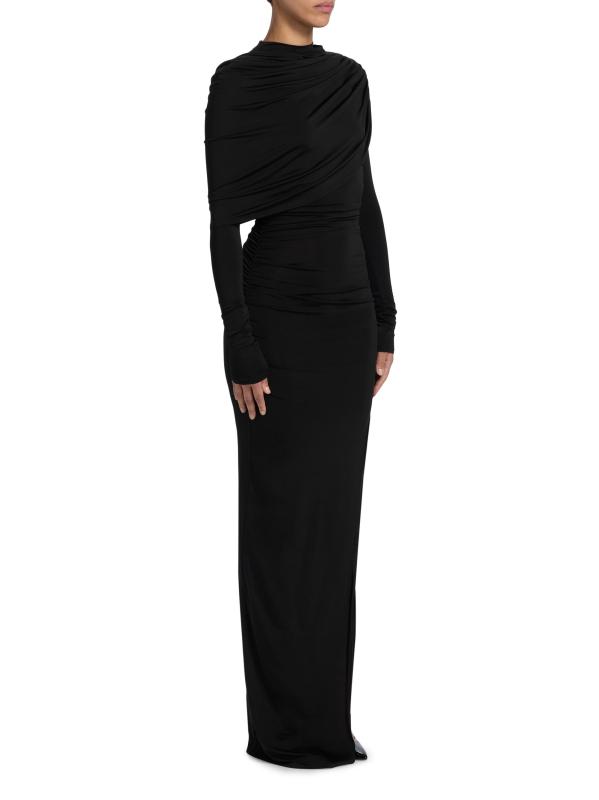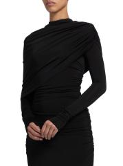 صُنع هذا الفستان المصنوع من الجيرسي القابل للتمدد من لابوينت في الولايات المتحدة الأمريكية ويتميز بتفاصيل شال منسدل وصدّار مكشكش.درابينيكي أكمام طويلة فتحة عالية للفخذ إغلاق بسحّاب خلفي 94% أسيتات/6% إيلاستين غسيل يدوي صُنع في الولايات المتحدة الأمريكية