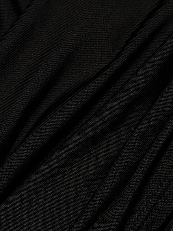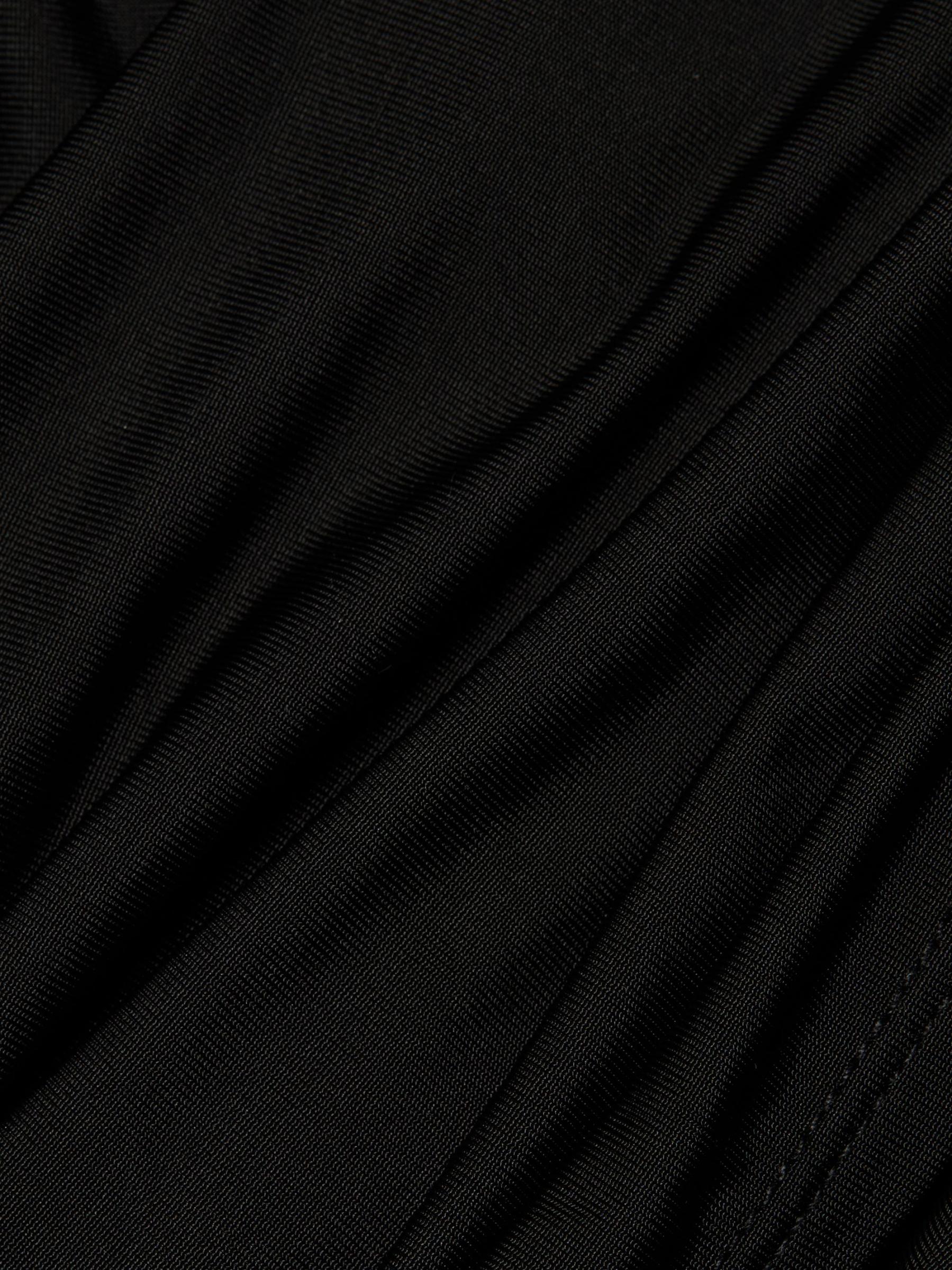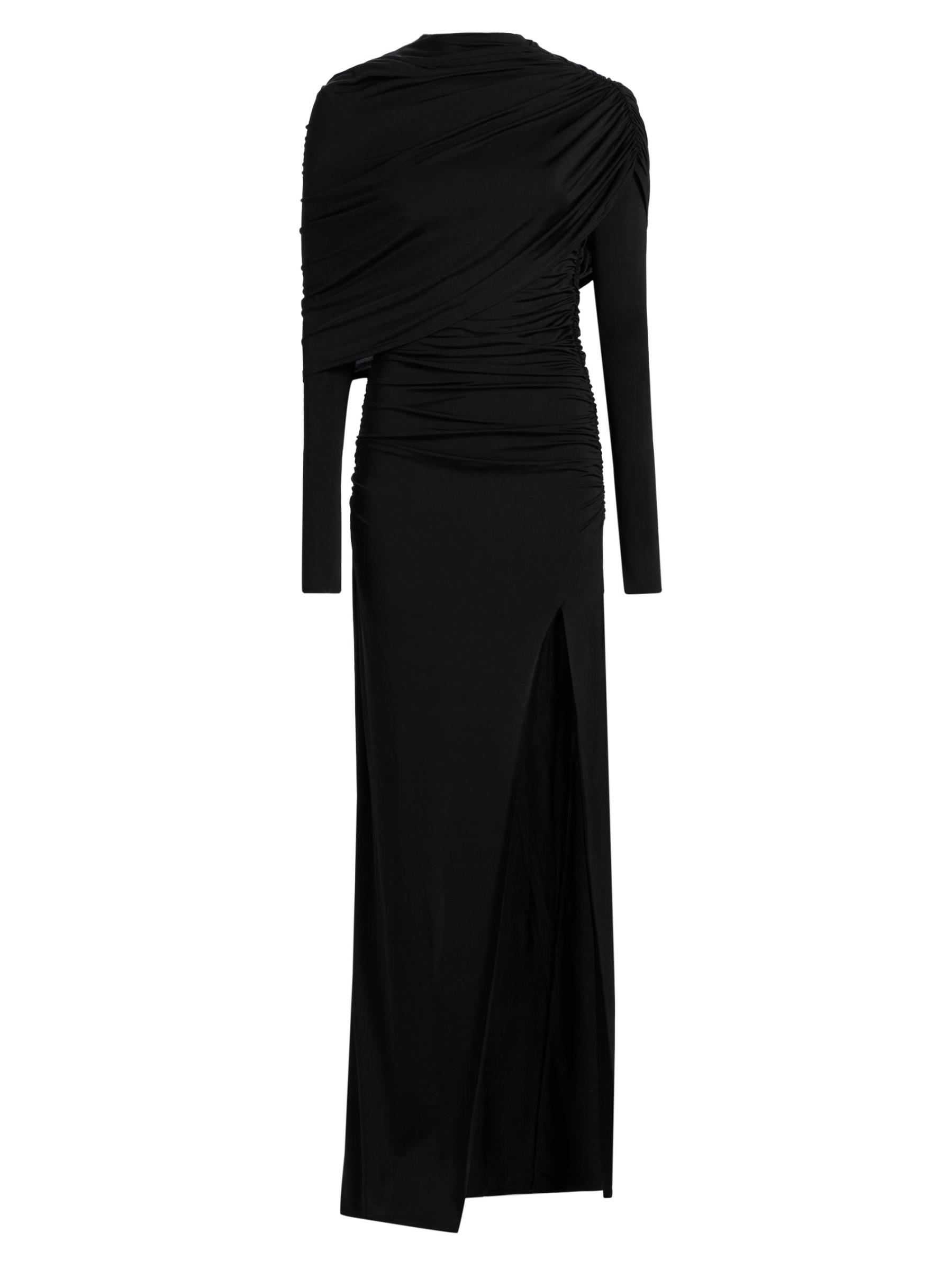 صُنع هذا الفستان المصنوع من الجيرسي القابل للتمدد من لابوينت في الولايات المتحدة الأمريكية ويتميز بتفاصيل شال منسدل وصدّار مكشكش.