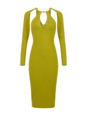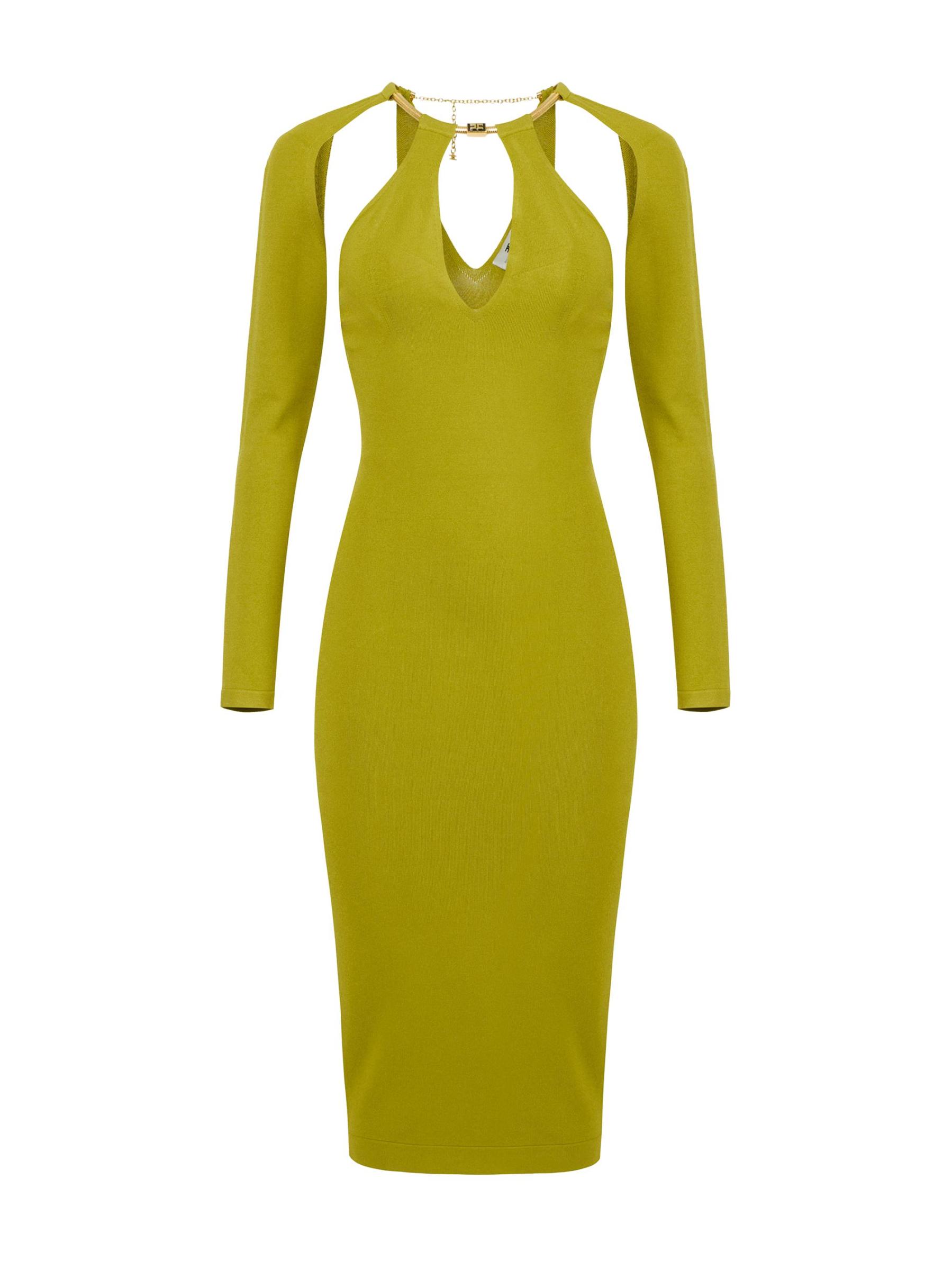 يتميز فستان Jewel Snake body-con من إليزابيتا فرانشي بفتحات على الكتف وحزام ذهبي اللون على الرقبة.سكوبنك أكمام طويلة تسحب 100% بوليستر تنظيف جاف مستوردة