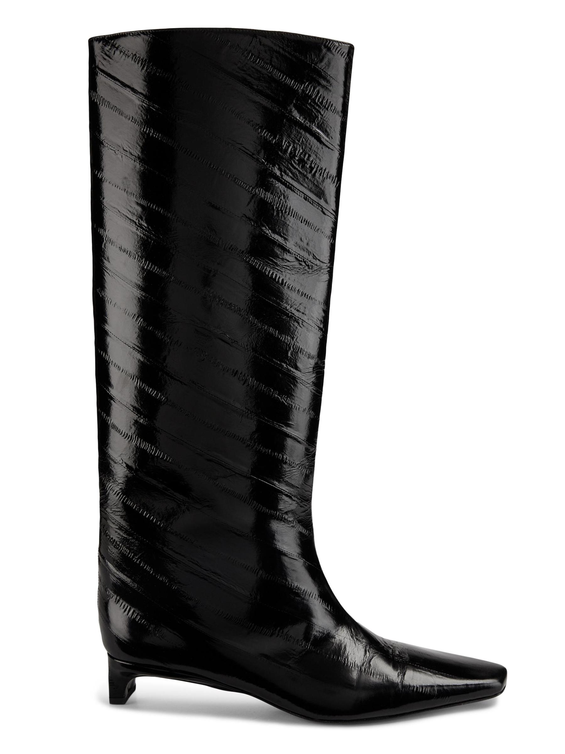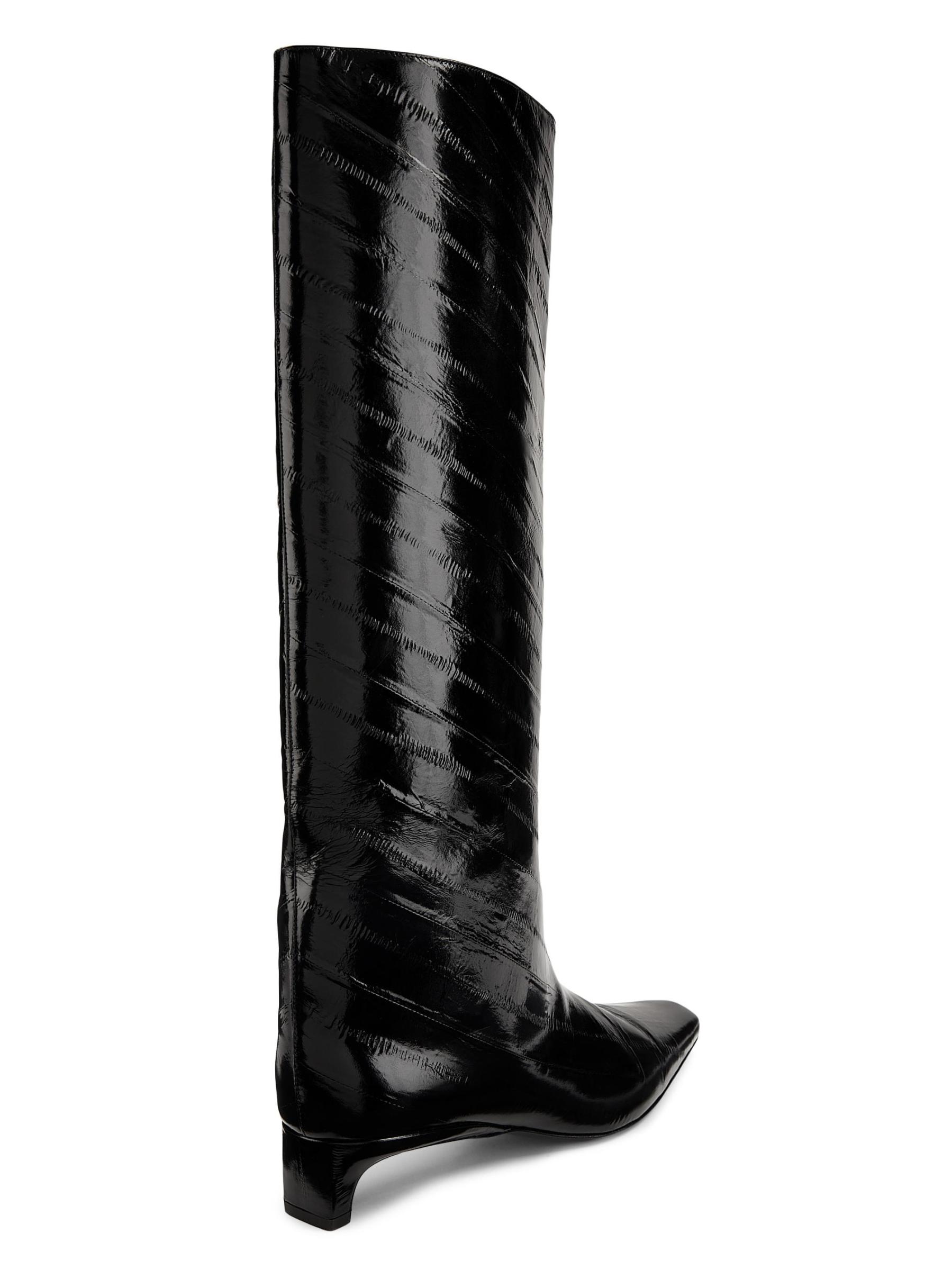 حذاء Joan الذي يصل حتى الركبة من Loulou de Saison مصنوع من الجلد المرن ومصمّم بمقدمة مربعة وكعب للقطط مقاس 35 مم.