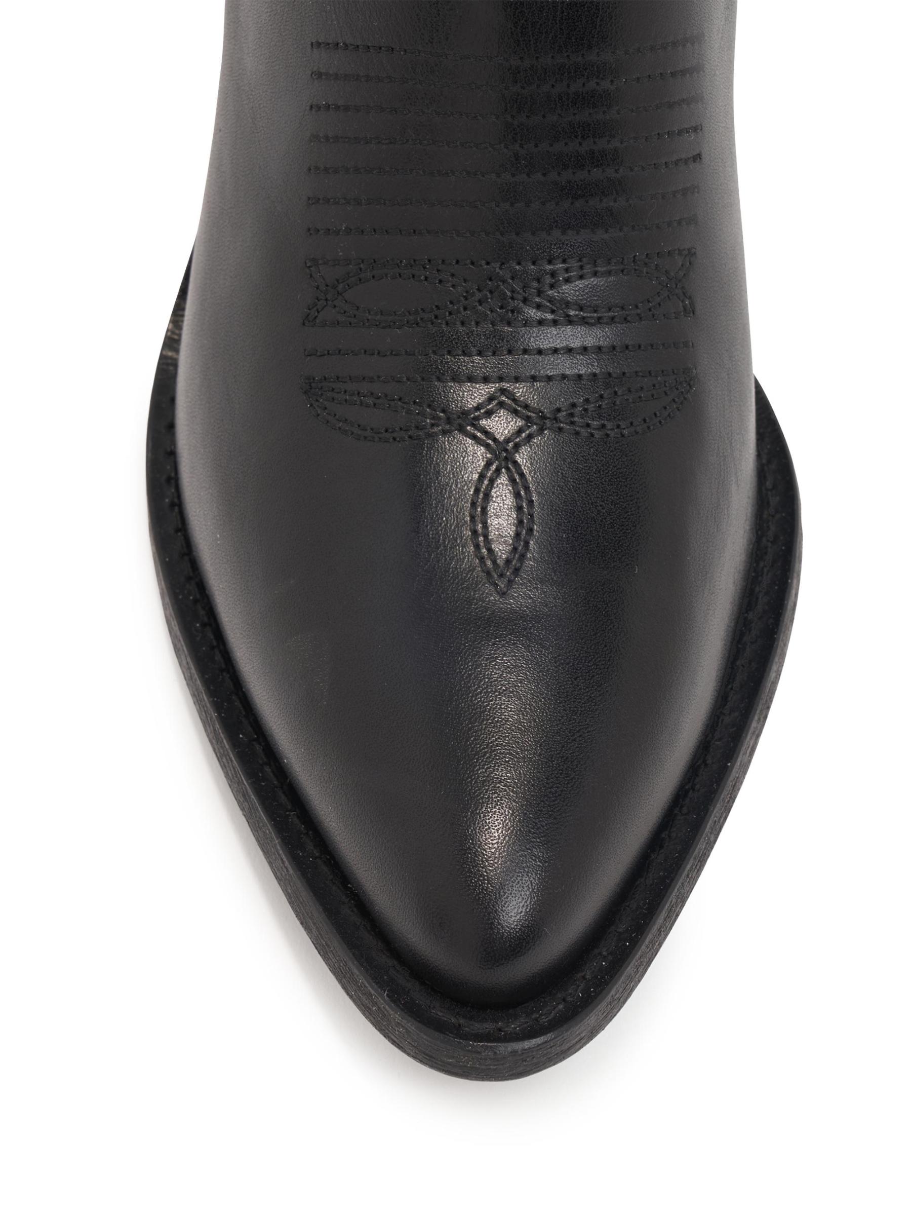 حذاء Jojo الذي يصل إلى الركبة على الطراز الغربي من Partlow مصنوع من الجلد ومصمم بعمود ممتد وكعب عريض يمكن ارتداؤه.نقطة إصبع القدم سهل الارتداء الجزء العلوي مصنوع من الجلد بطانة جلدية نعل جلدي صُنع في إيطاليا