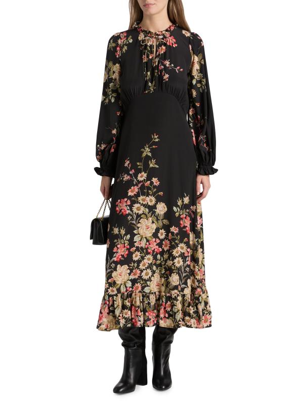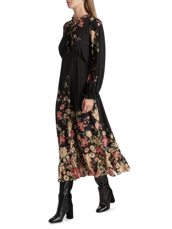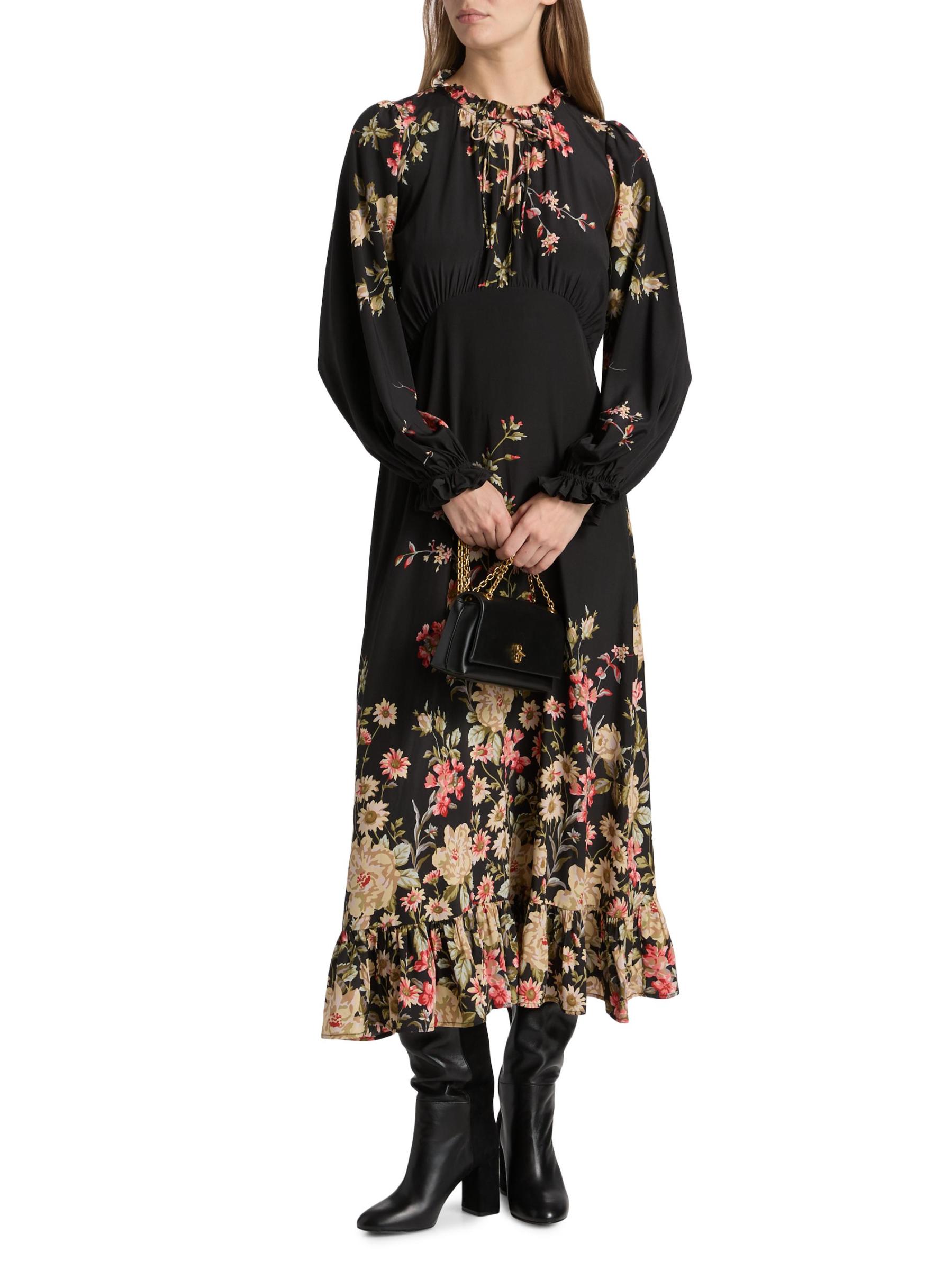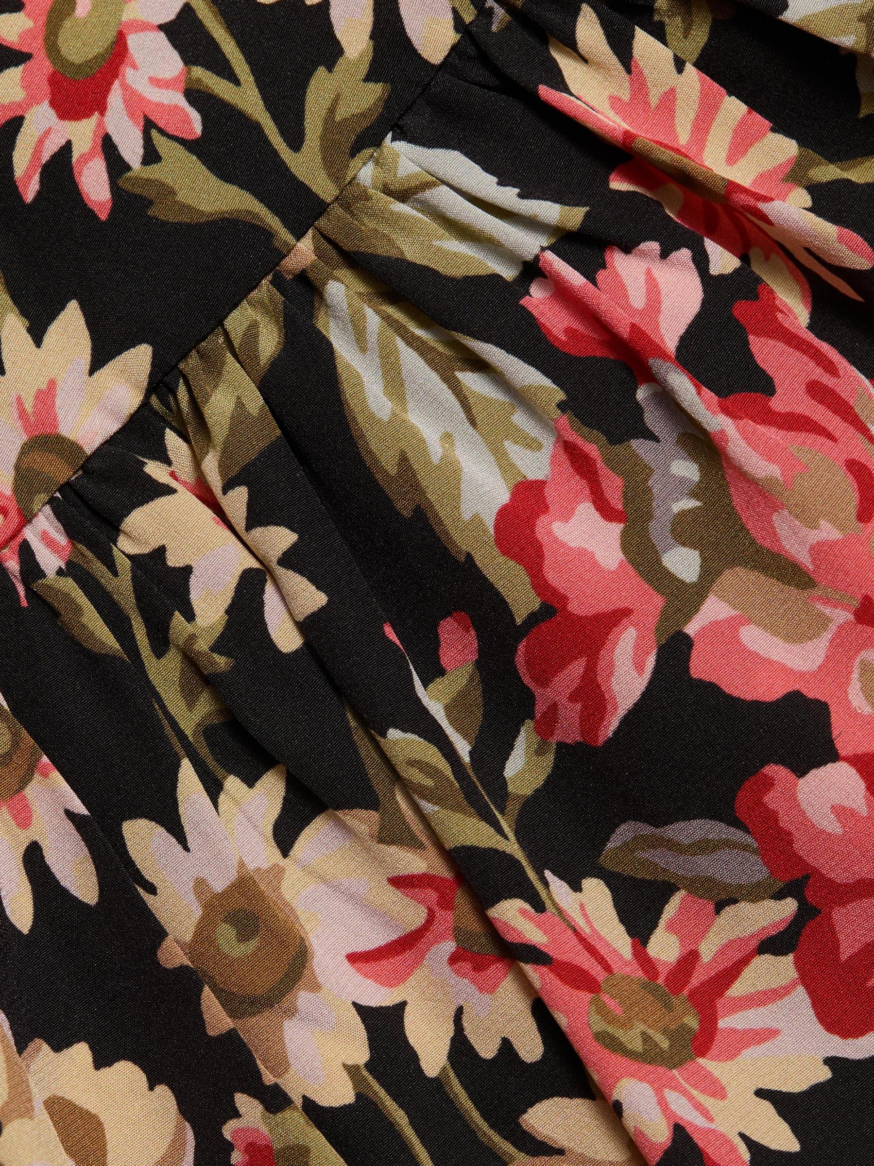يتميّز فستان Jolie midi من Sea بطبعة الأزهار الخالدة، ويتميز بتصميم مريح ومنبسط مع ياقة رقيقة مكشكشة وربطة أمامية.