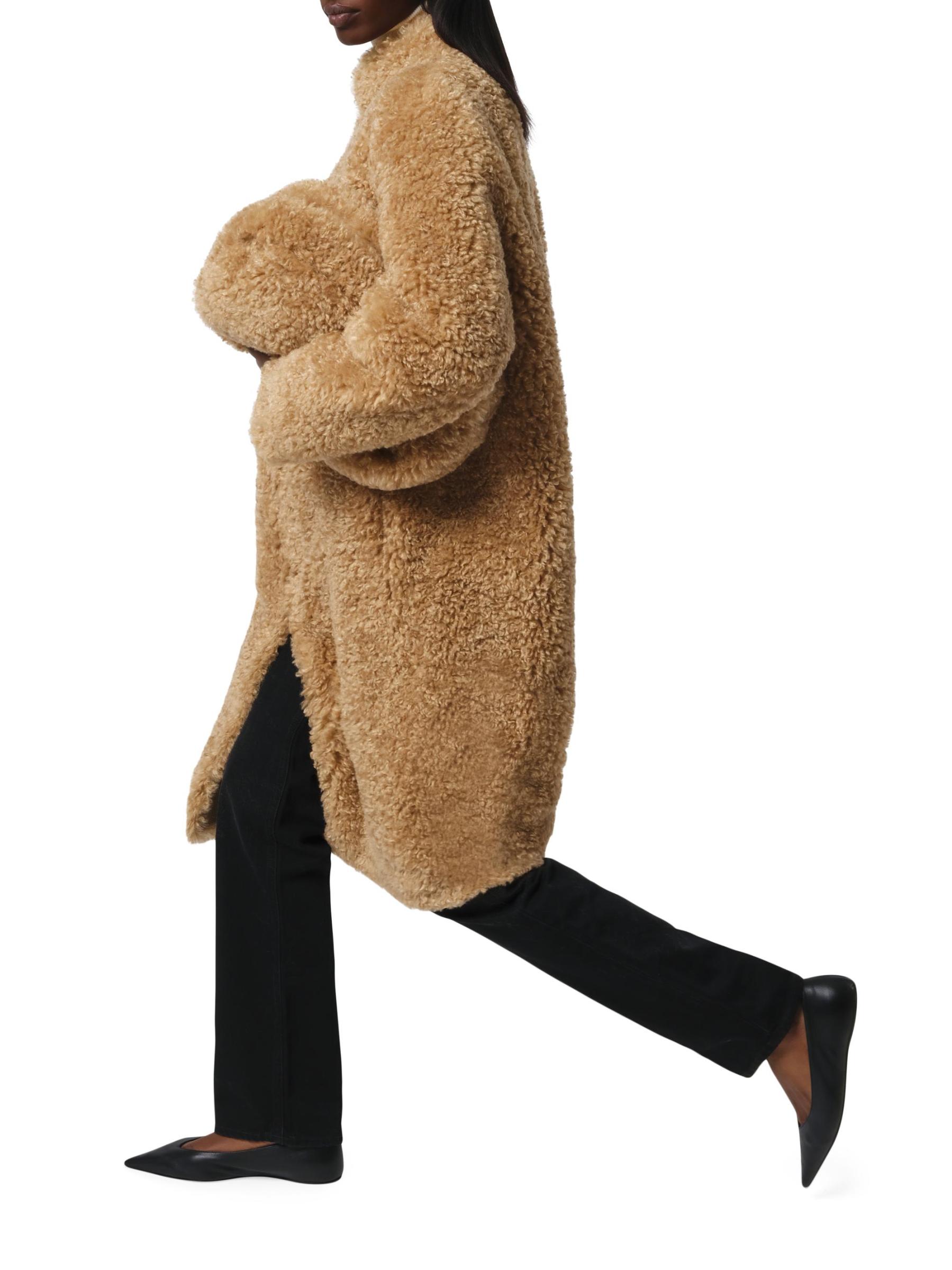 حقيبة جامبو نور من Apparis مصنوعة من الشيرلينغ الصناعي ومزينة ببطانة من الجلد المدبوغ بألوان مختلفة.