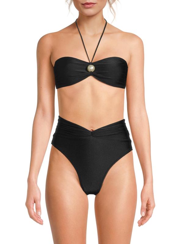 يتميز الجزء العلوي من البيكيني Juno من Shani Shemer برقبة رسن كلاسيكية وزخرفة لؤلؤية في المنتصف.