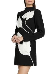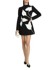 يتميّز فستان Kadence القصير من Acler بتصميم مُنظّم مع رقبة على شكل قمعي وأكمام طويلة، ويتميز بتزيينات كبيرة الحجم على شكل بتلات عالية التباين لإضفاء لمسة نحتية.