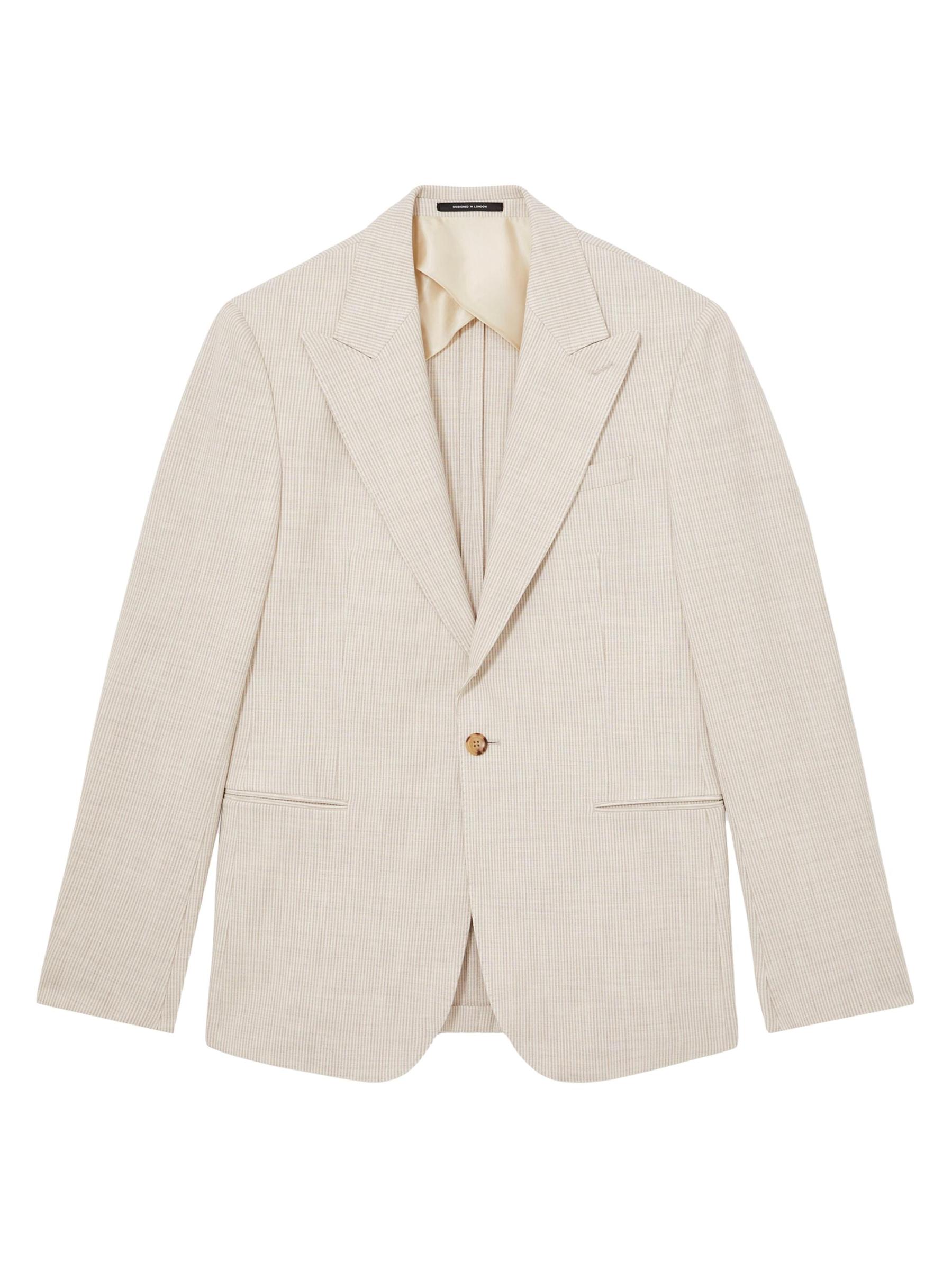 تتميز سترة Kai من Reiss بتصميم مخطط وطية صدر عالية وجيوب يدوية.