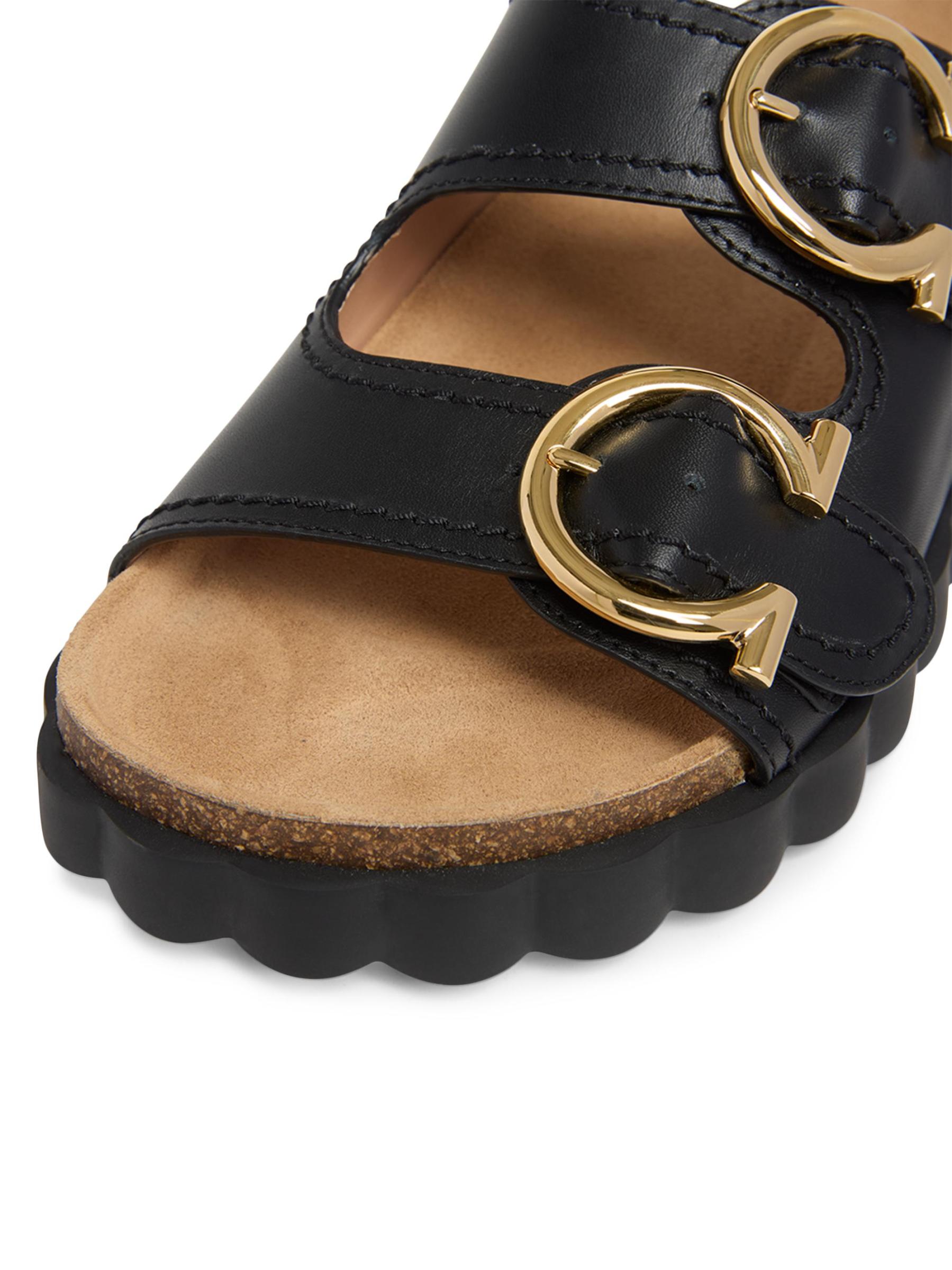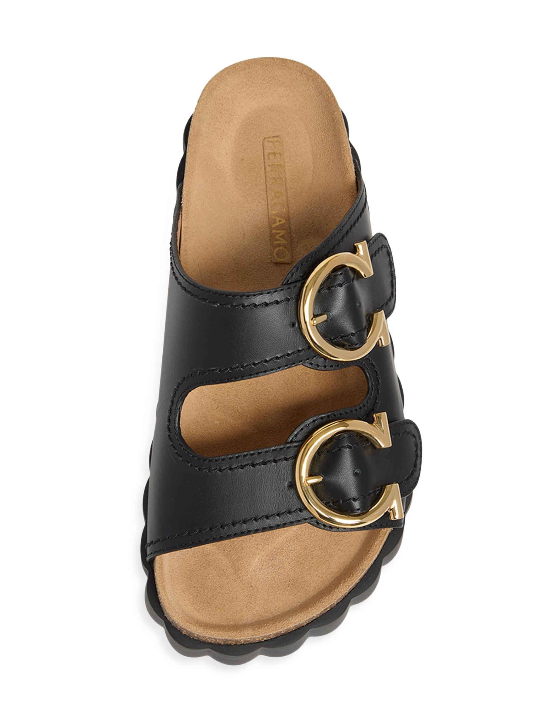 صندل Kapalua من FEERAGAMO مصنوع من الجلد الناعم ومصمم بإبزيم Gancini باللون الذهبي.