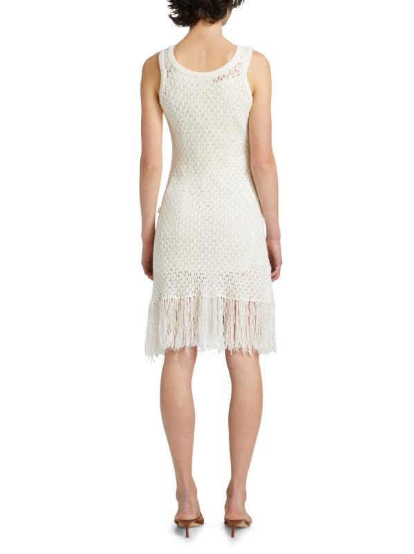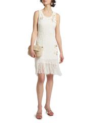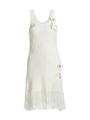 يتميز فستان Karla المحبوك بالدانتيل من Lingua Franca بالزهور الكروشيه يدويًا في جميع أنحائه، مع تفاصيل الخرز الخشبي وحافة مزينة بشراشيب.