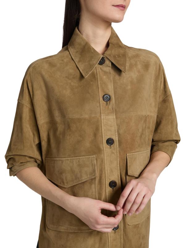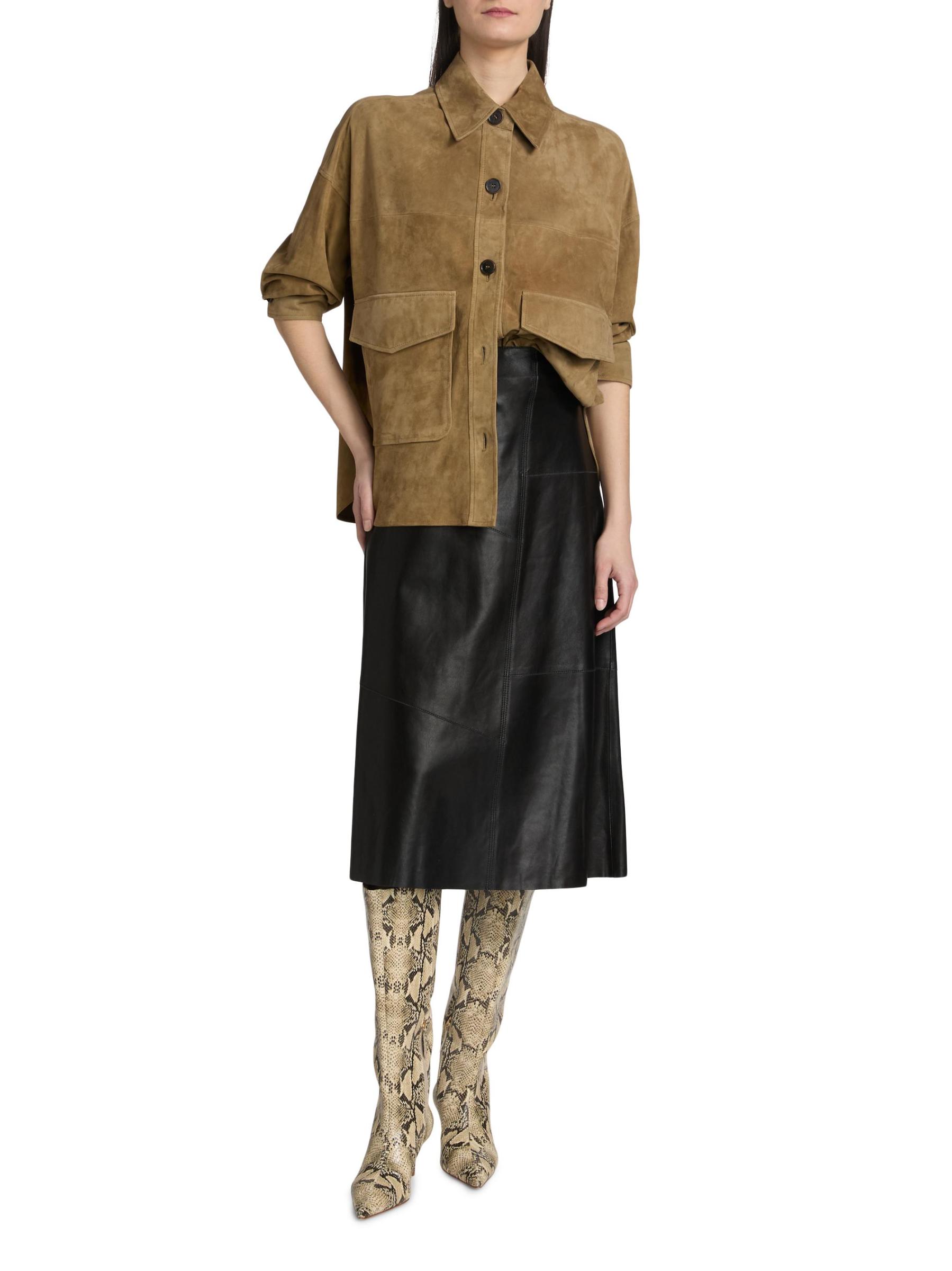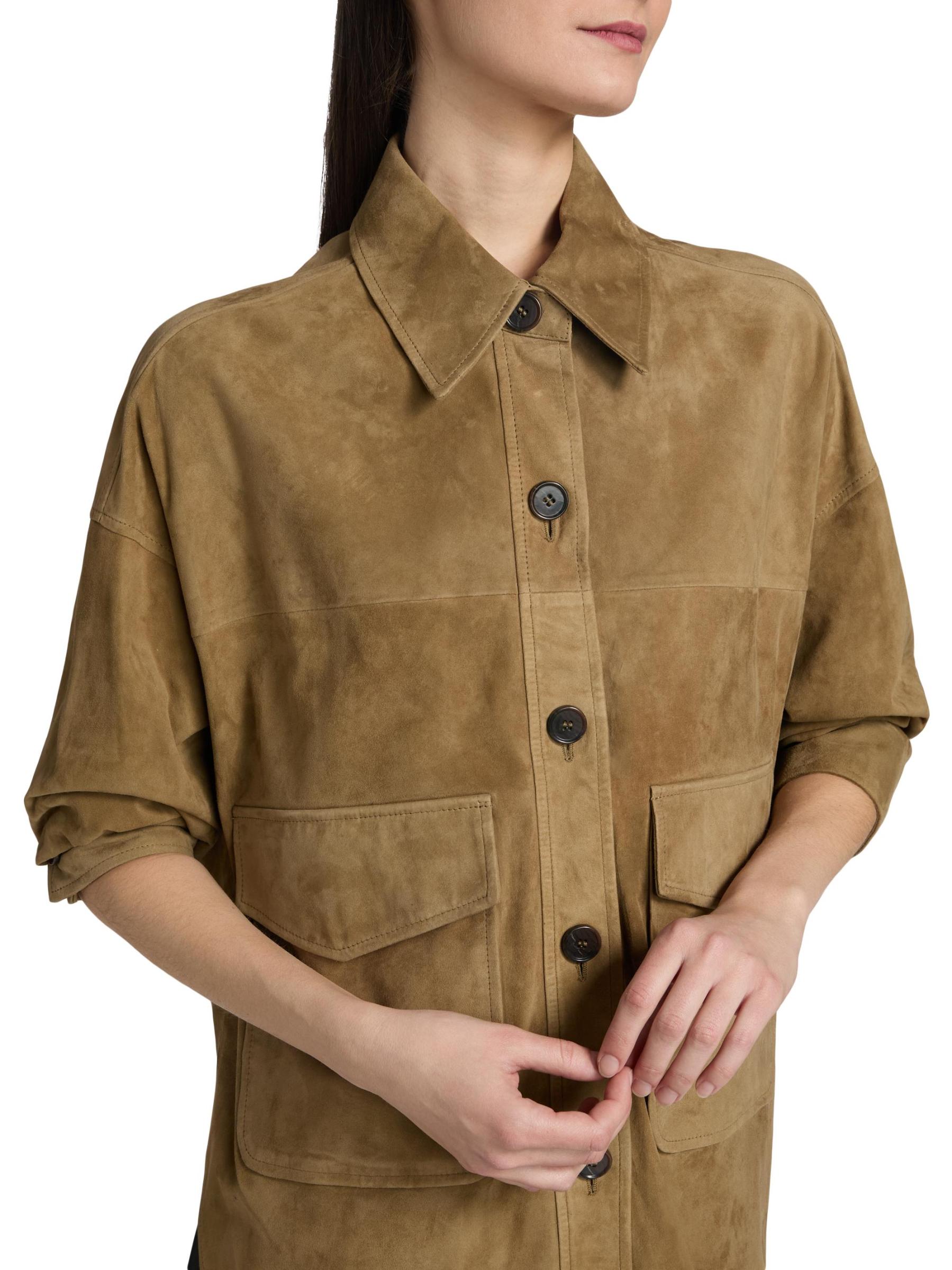 جاكيت Kaylee من Arma مصنوع من الجلد المدبوغ مع ياقة واسعة وقصة عادية. جيوب جانبية عملية وإغلاق بأزرار أمامية تضفي هيكلًا على الصورة الظلية النظيفة والبسيطة.