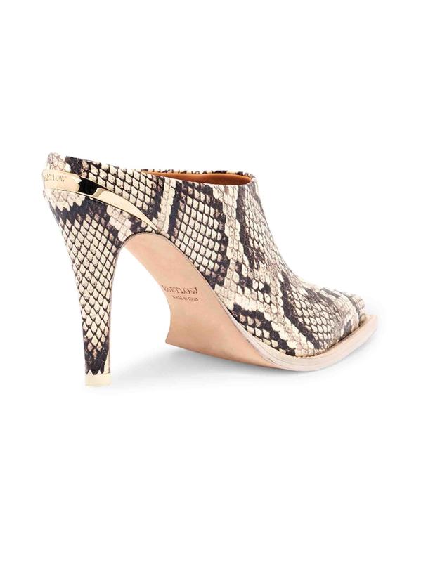 تتميّز أحذية «كيلي» المصنوعة من الجلد بنقشة البيثون من Partlow بمقدمة حادة ومدببة وكعب خنجر مع بطانة معدنية منقوشة بشعار الماركة.نقطة إصبع القدم تم تشغيل الشرائح الجزء العلوي مصنوع من الجلد بطانة جلدية نعل جلدي صُنع في إيطاليا