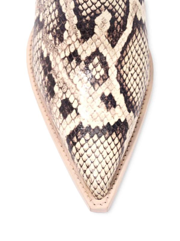 تتميّز أحذية «كيلي» المصنوعة من الجلد بنقشة البيثون من Partlow بمقدمة حادة ومدببة وكعب خنجر مع بطانة معدنية منقوشة بشعار الماركة.