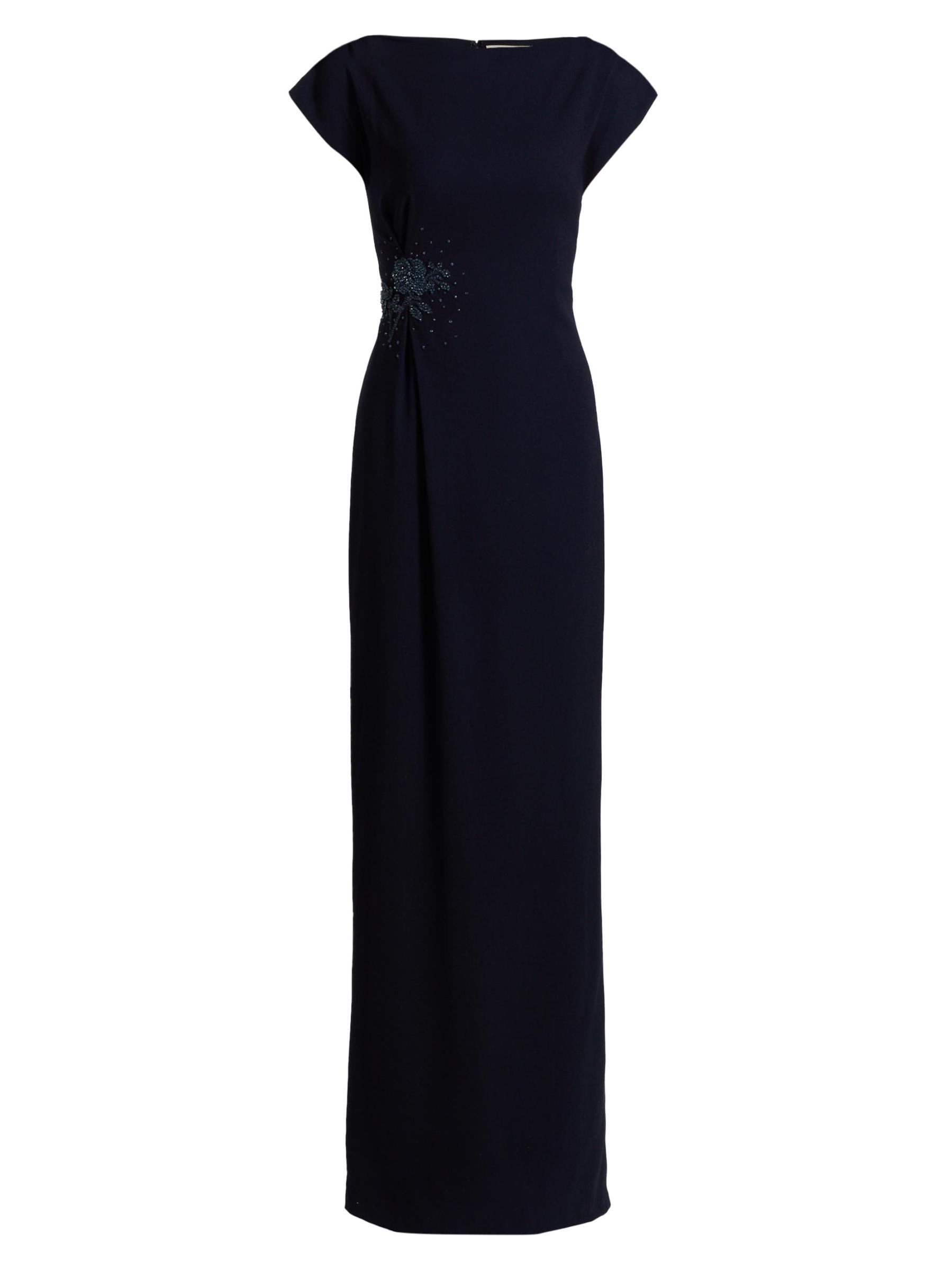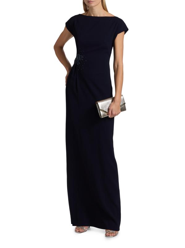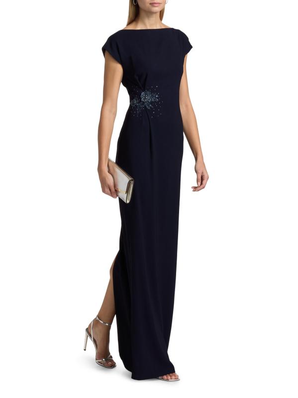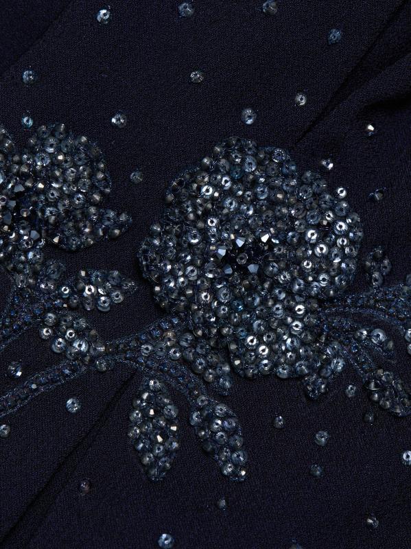 Babi من الكريب المرن، وهو مزين بالترتر والخرز على الكتف.بوتنك أكمام كاب إغلاق بسحّاب خلفي 68% بولي إيثيلين/ 30% بوليستر/ 2% بولي يوريثان البطانة: 100% بوليستر تنظيف جاف مستوردة