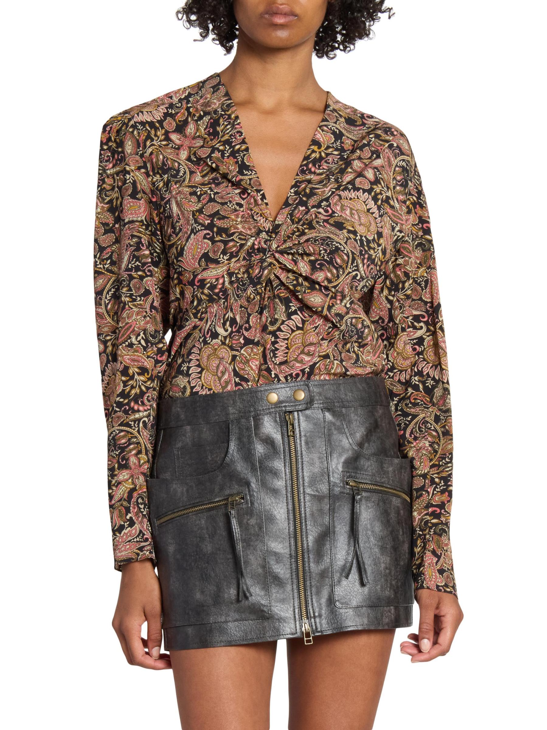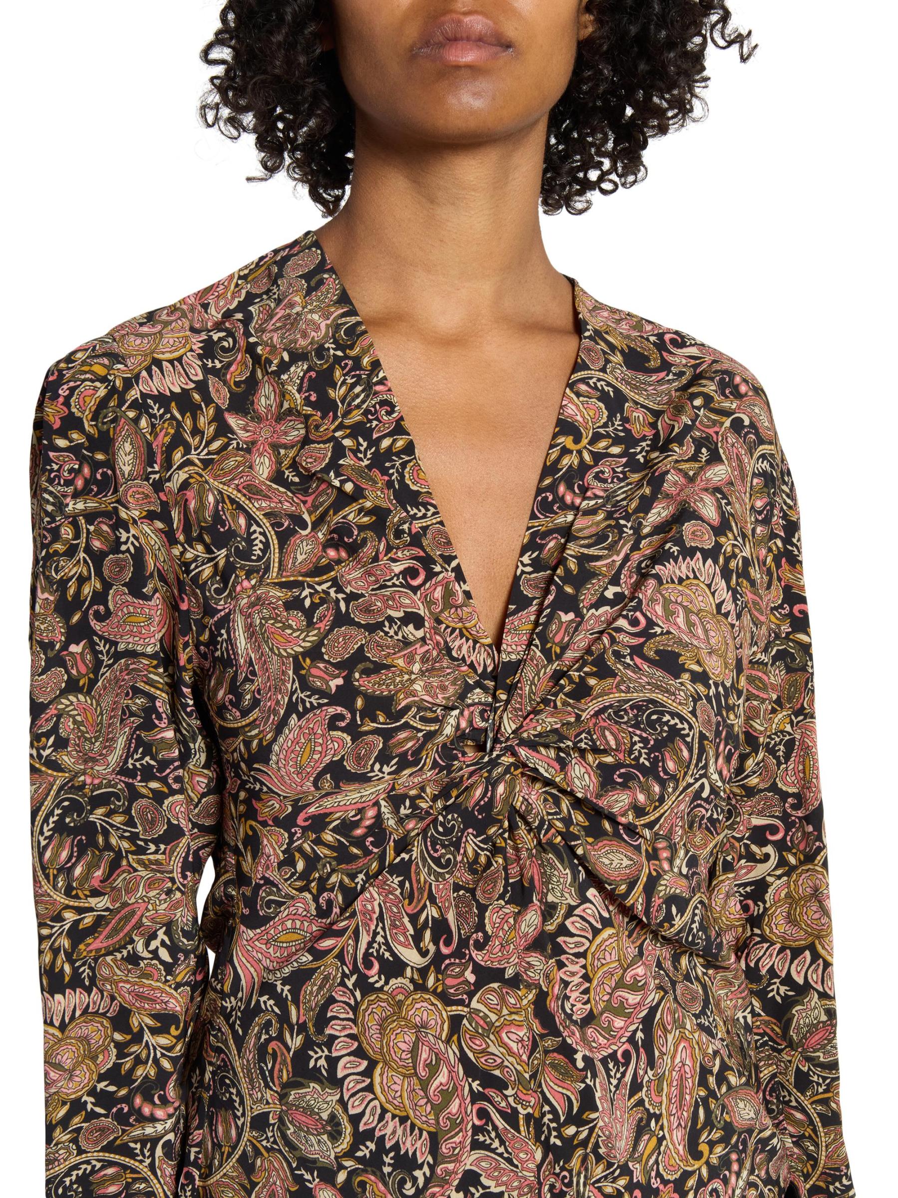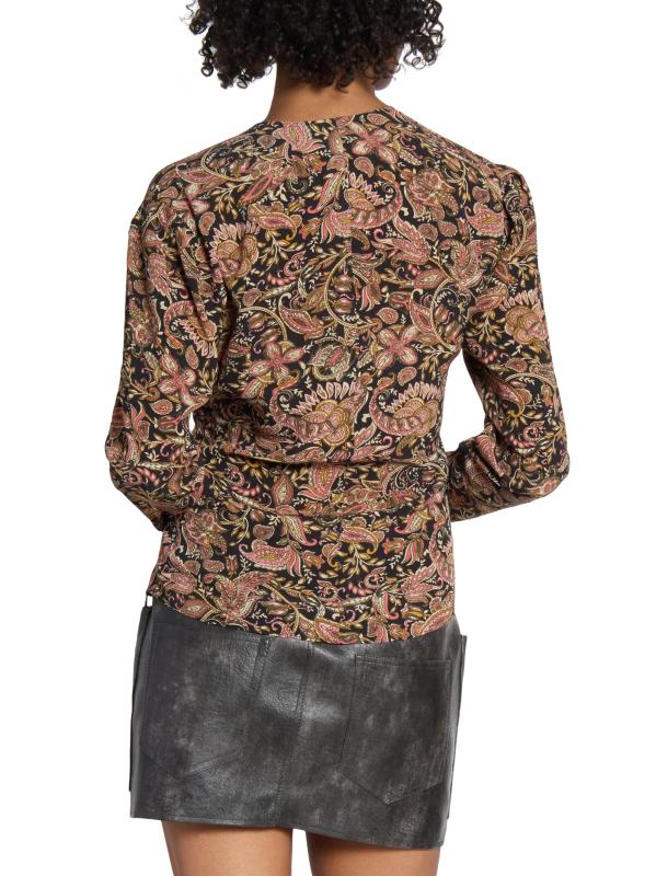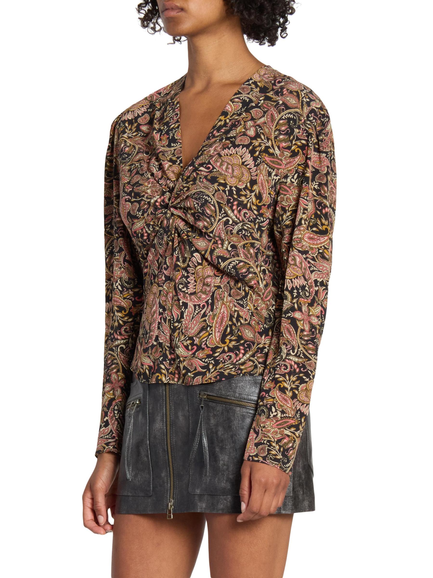 بلوزة Kelyane من Isabel Marant Étoile مصنوعة من قطن بيزلي وتم تشكيلها بتفاصيل ملتوية في منتصف الصدر.