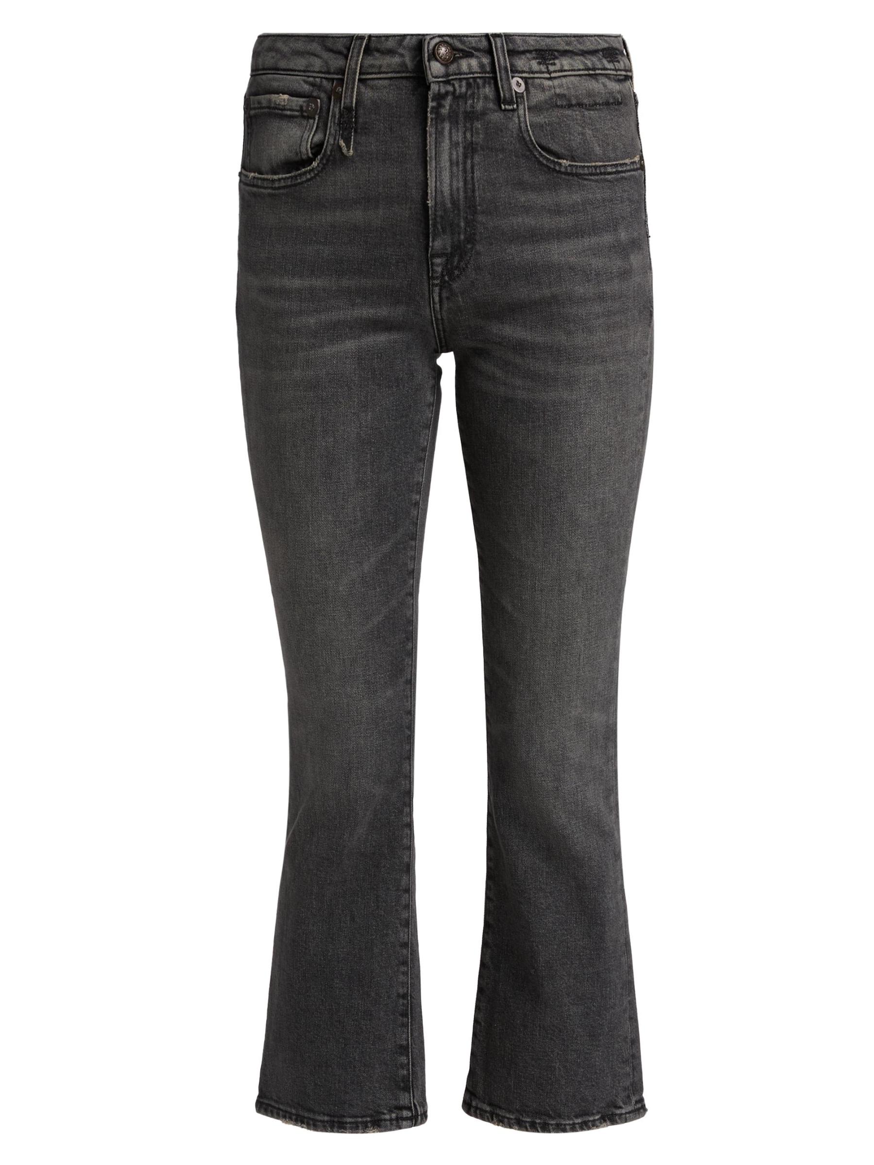 صُنع جينز Kick Fit من R13 في إيطاليا من القطن الناعم القابل للتمدد، ويتميز بساق مستقيمة وواسعة قليلاً بطول الكاحل.