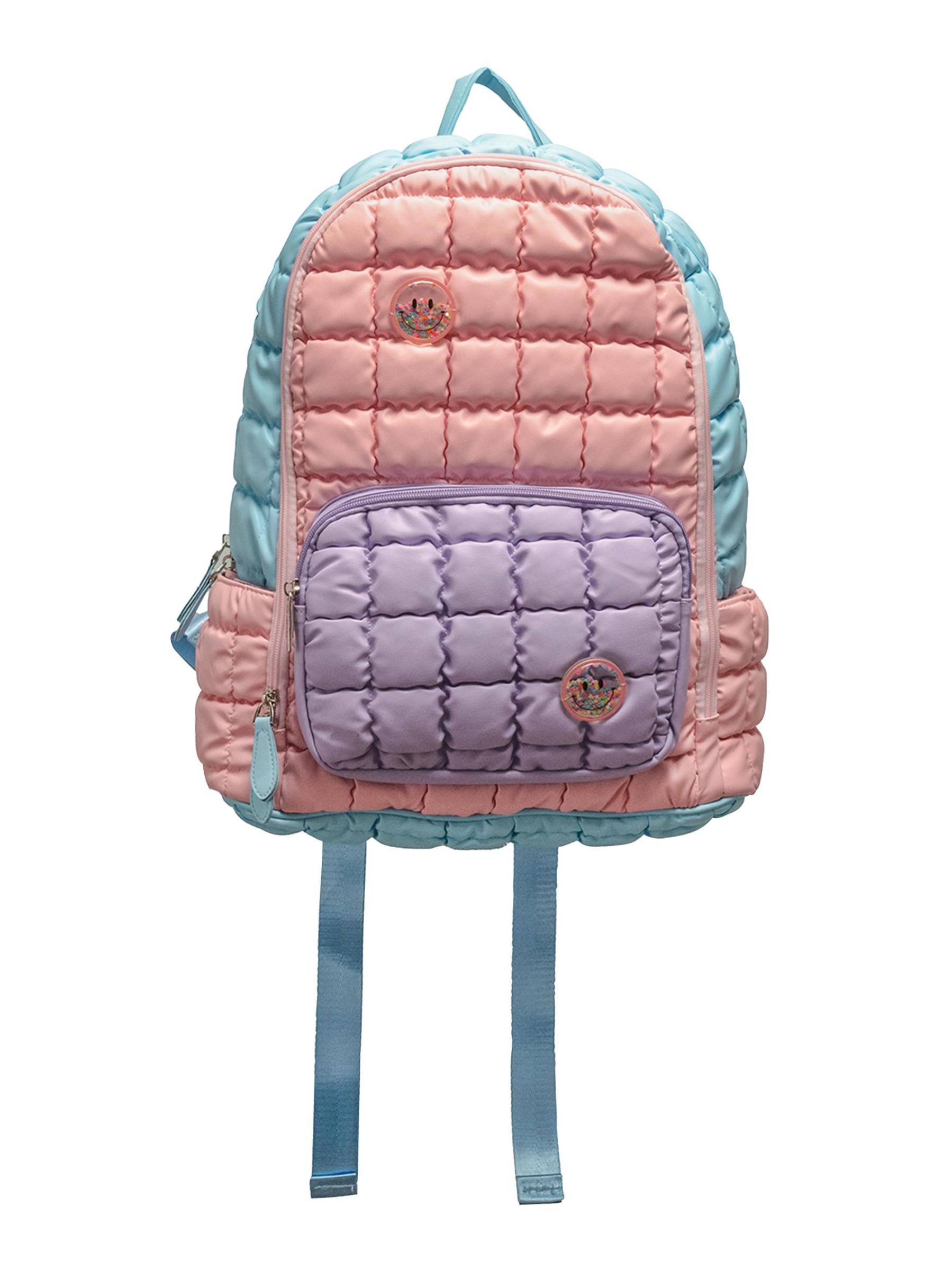 حقيبة ظهر Bari Lynn المبطنة متعددة الألوان مزينة بوجوه مبتسمة مطرزة تتميز بسحر القصاصات.