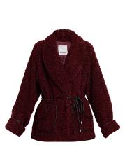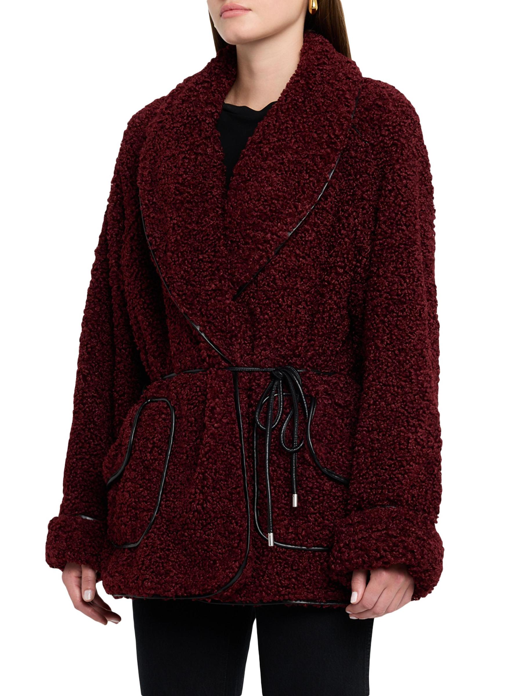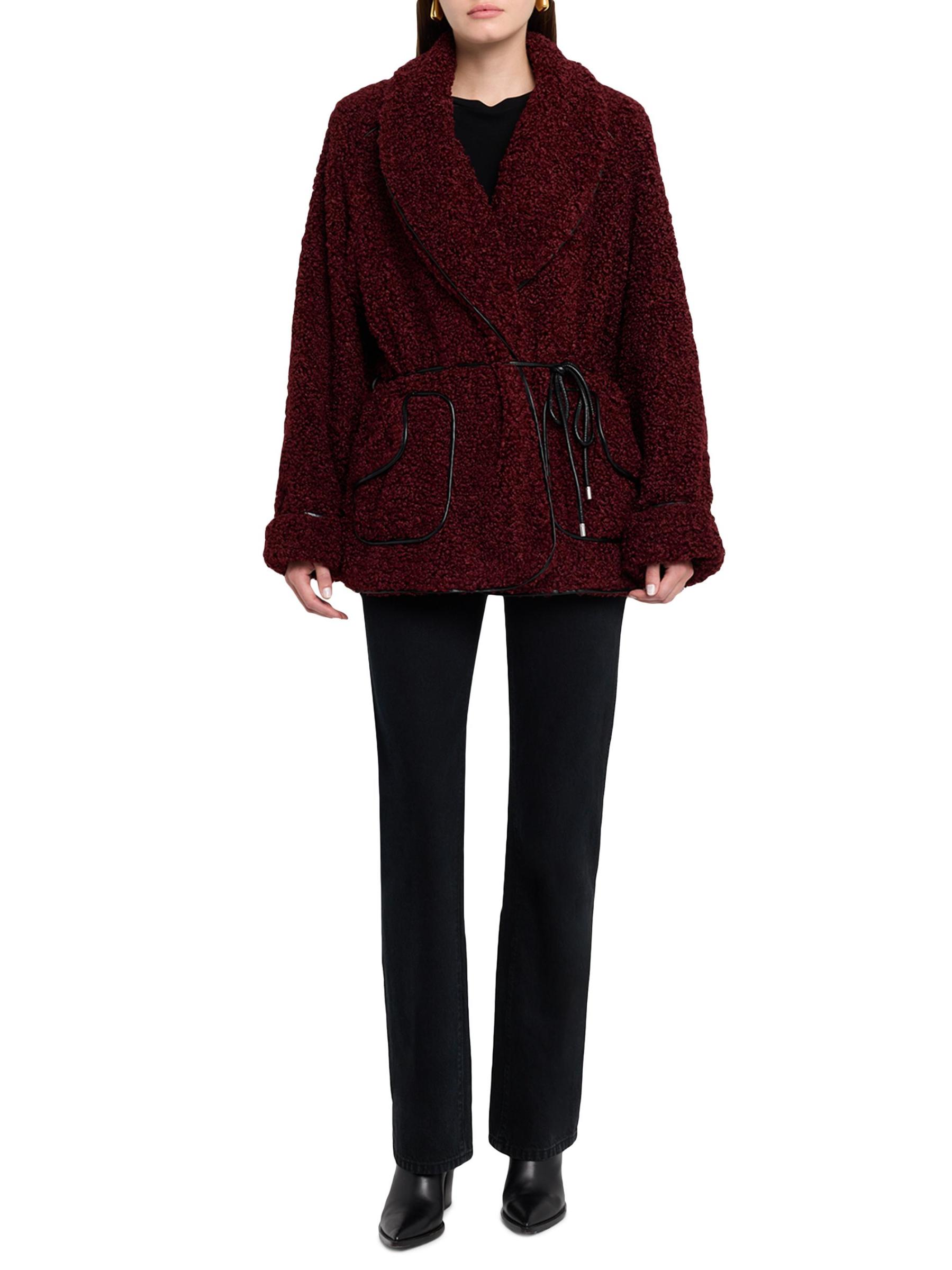 جاكيت Kimia من SIMKHAI مصنوع من الشيربا الصناعي بتصميم مفتوح من الأمام. تضفي ياقة الشال والحزام الذاتي والجيوب الجانبية شكلاً إضافيًا لهذا النمط.