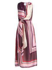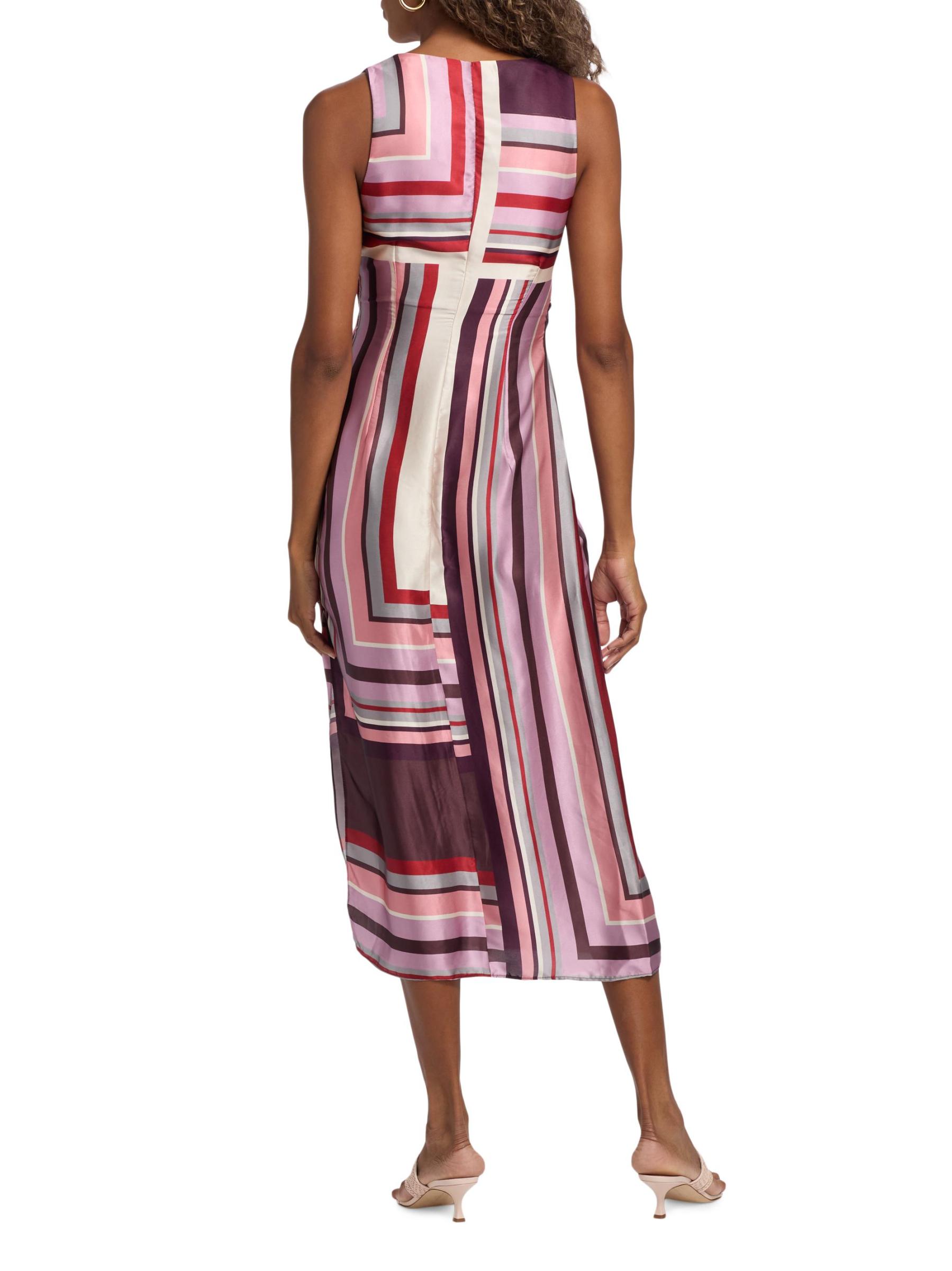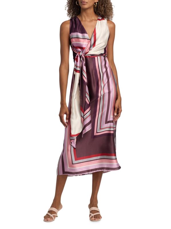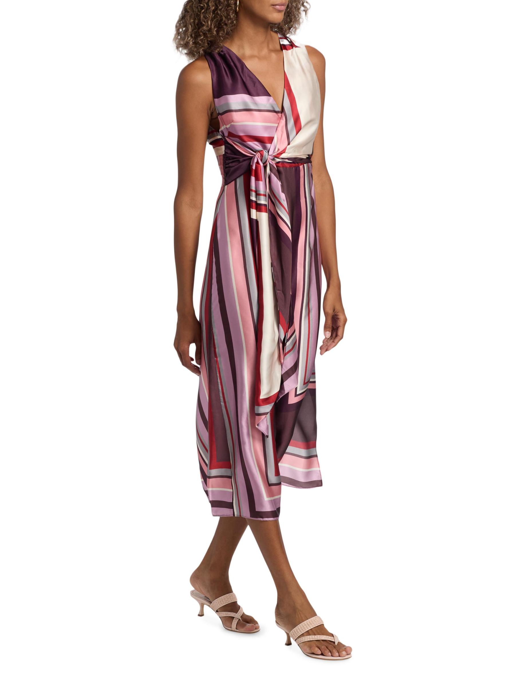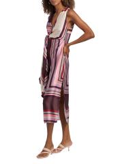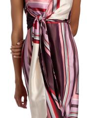 فستان متوسط الطول بتصميم ملفوف من الساتان مخطط من كينا