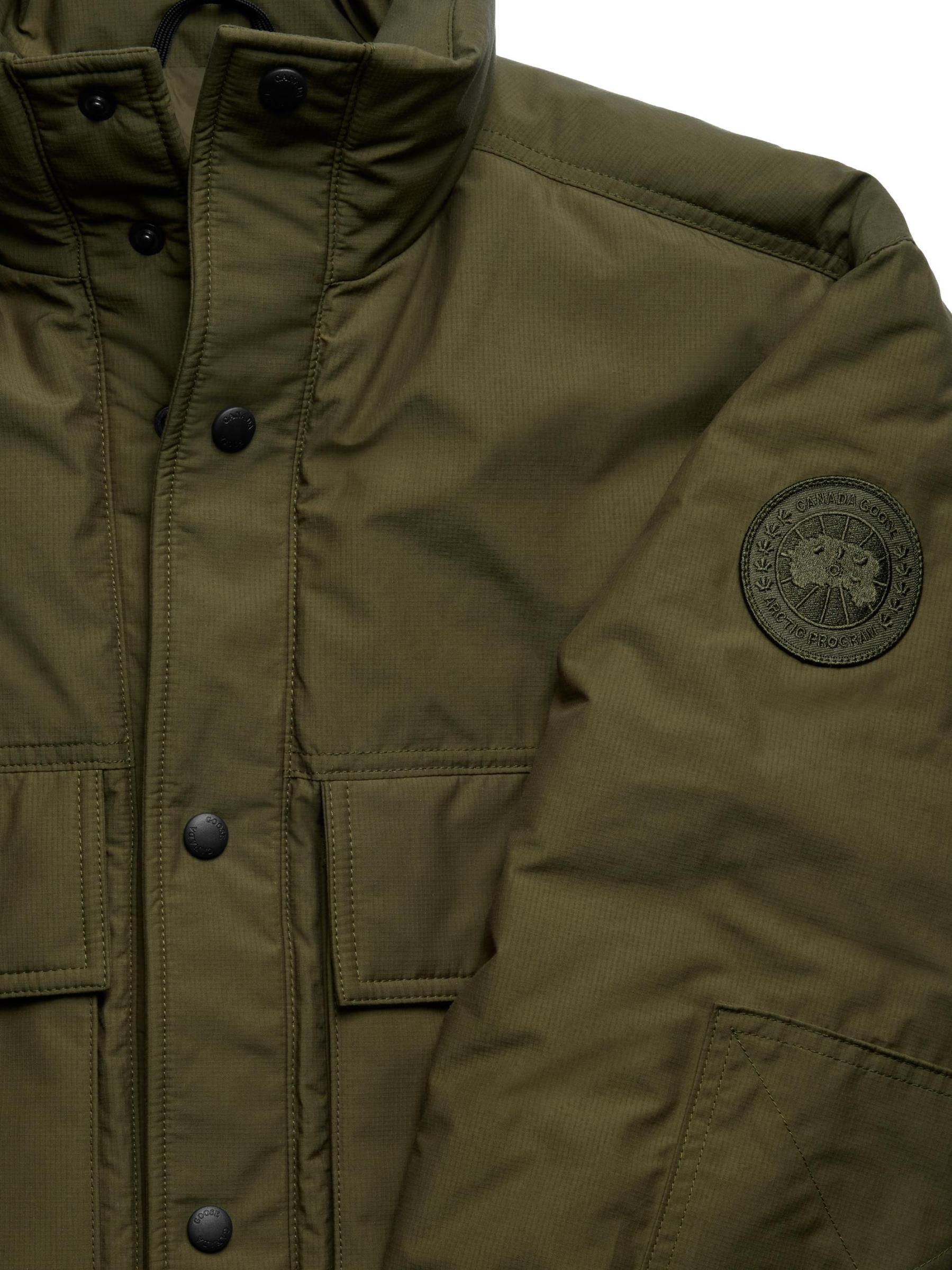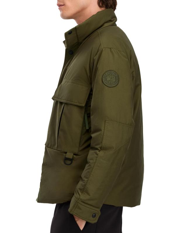 تم تصميم جاكيت كيربي من كندا غوس بتصميم نفعي. مصنوع من نسيج مقاوم للتمزق مصنوع من القطن والنايلون، ويتميز بألواح محبوكة وجيوب أمامية كبيرة الحجم.