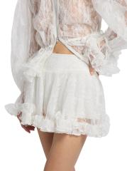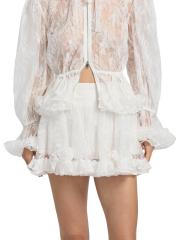 تتميّز تنورة Kirsten من Aknvas المصنوعة من الدانتيل الزهري الرقيق بخصر منخفض وحاشية مكشكشة.