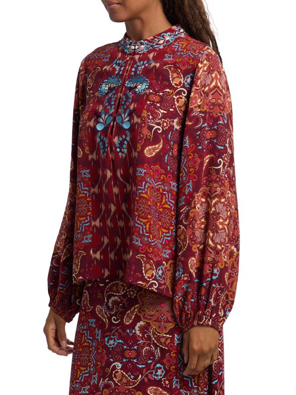تتميز بلوزة Kit المطرزة من Figue بطبعة مستوحاة من Ikat مزينة بتطريز الأزهار المعقدة.