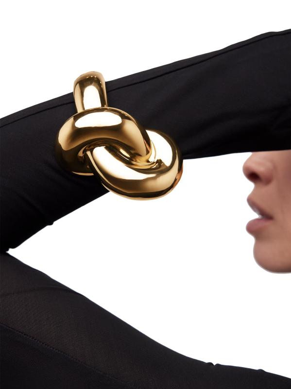 من مجموعة Knot. يتميز هذا السوار من جينيفر فيشر بزخرفة عقدة أنيقة، وهو مصنوع من النحاس المصقول المطلي بالذهب عيار 10 قيراط.