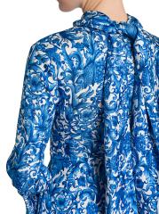 تتميّز هذه الحقيبة المصنوعة من الحرير الفاخر بتصميم أنيق على شكل حرف A وتتميّز بزخرفة مستوحاة من الأزهار الباروكية في جميع أجزائها وتقويرة معقودة برقّة على شكل ثقب المفتاح.فتحة رقبة معقودة بفتحة المفتاح أكمام طويلة سحّاب جانبي مخفي أساور مضيئة جيوب جانبية تنورة مجمعة حرير تنظيف جاف صُنع في إيطاليا