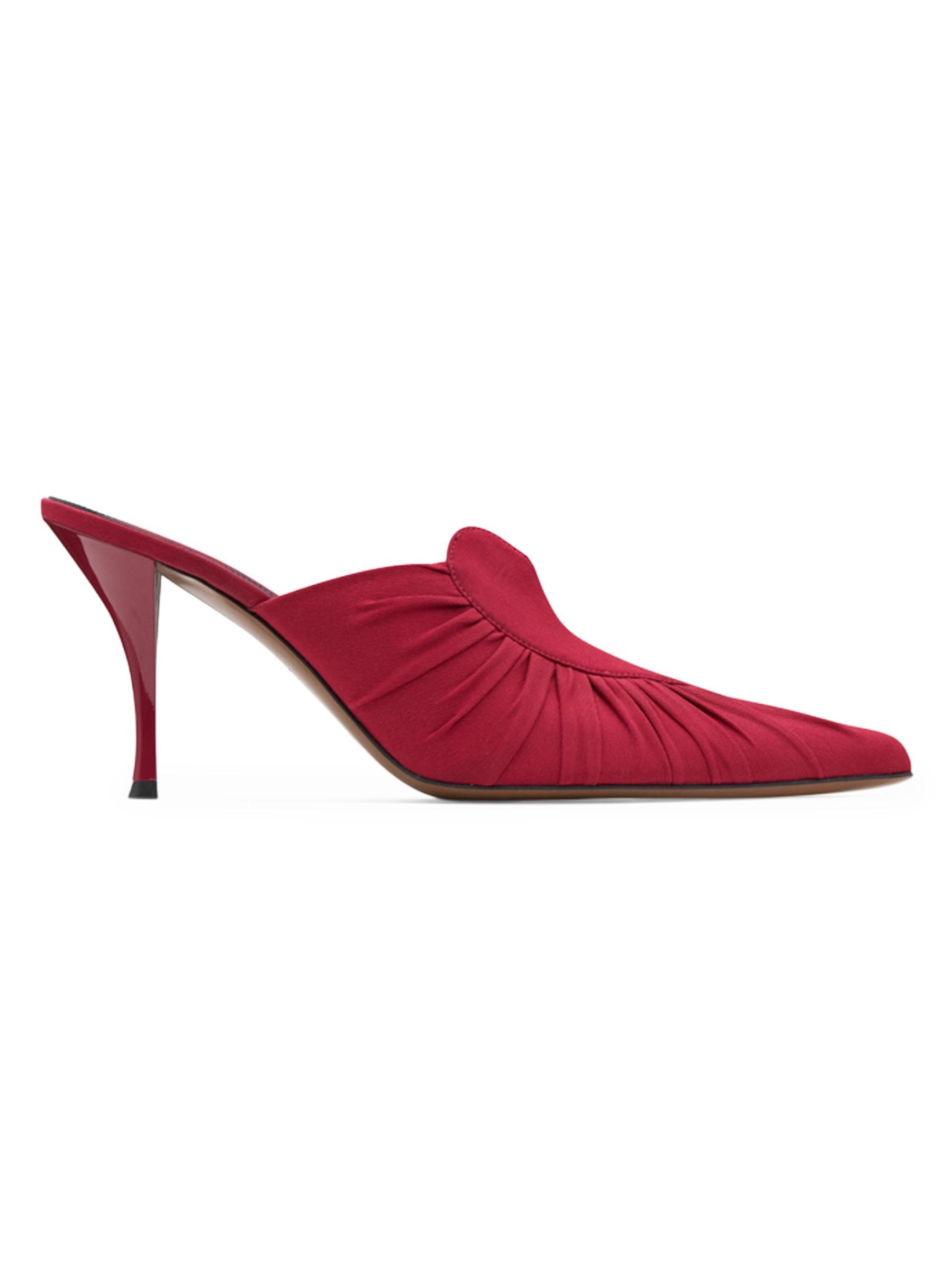 تتميز أحذية Kochab من Neous بجزء علوي مزين بكشكشة رقيقة من الكريب مع لوحة على شكل قلب ومقدمة مدببة.نقطة إصبع القدم سهل الارتداء الجزء العلوي من الحرير بطانة جلدية نعل جلدي صُنع في إيطاليا