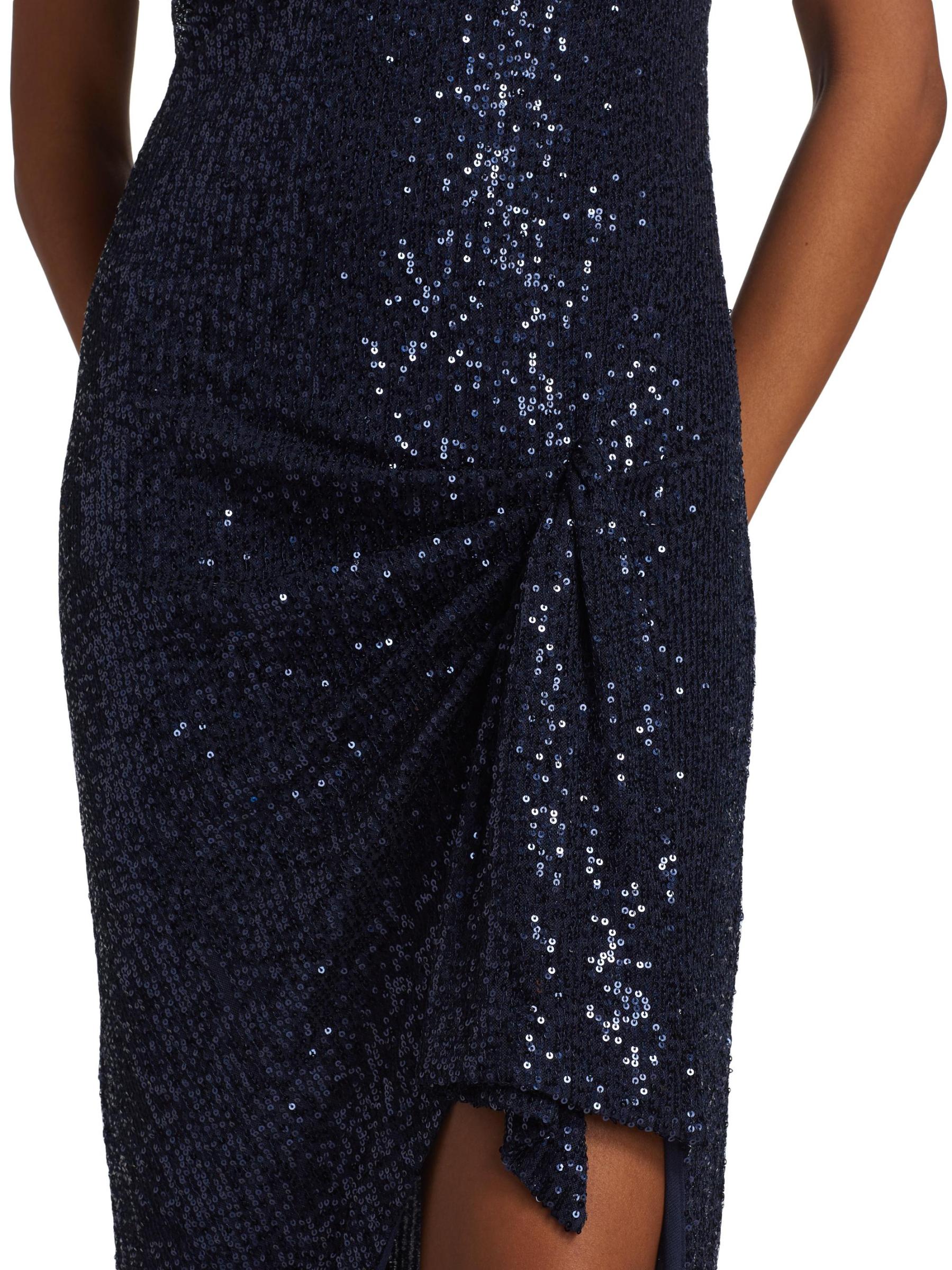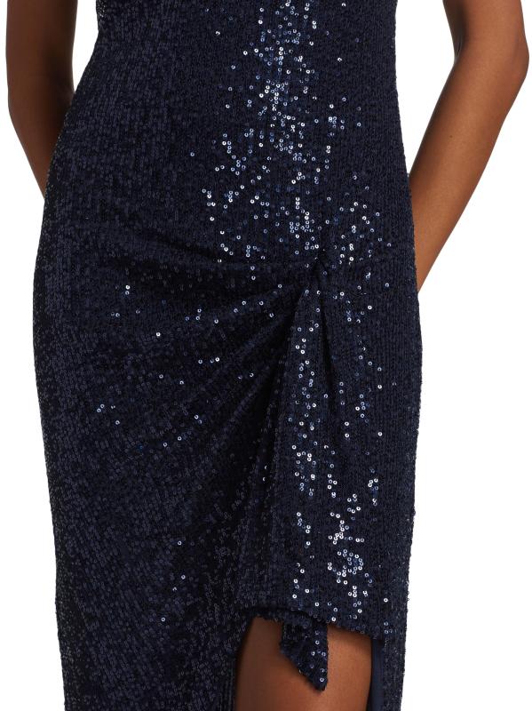 يتميز فستان Koren maxi من CAROLINE CONSTAS بتصميم جذاب مع حافة منسدلة عالية ومنخفضة. يُكمل الترتر اللامع هذا النمط ذو الرقبة على شكل حرف V.