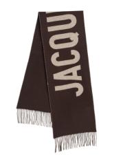 يتميز وشاح L'Echarpe المصنوع من الصوف من Jacquemus بطباعة شعار كبير وتقليم بأهداب.