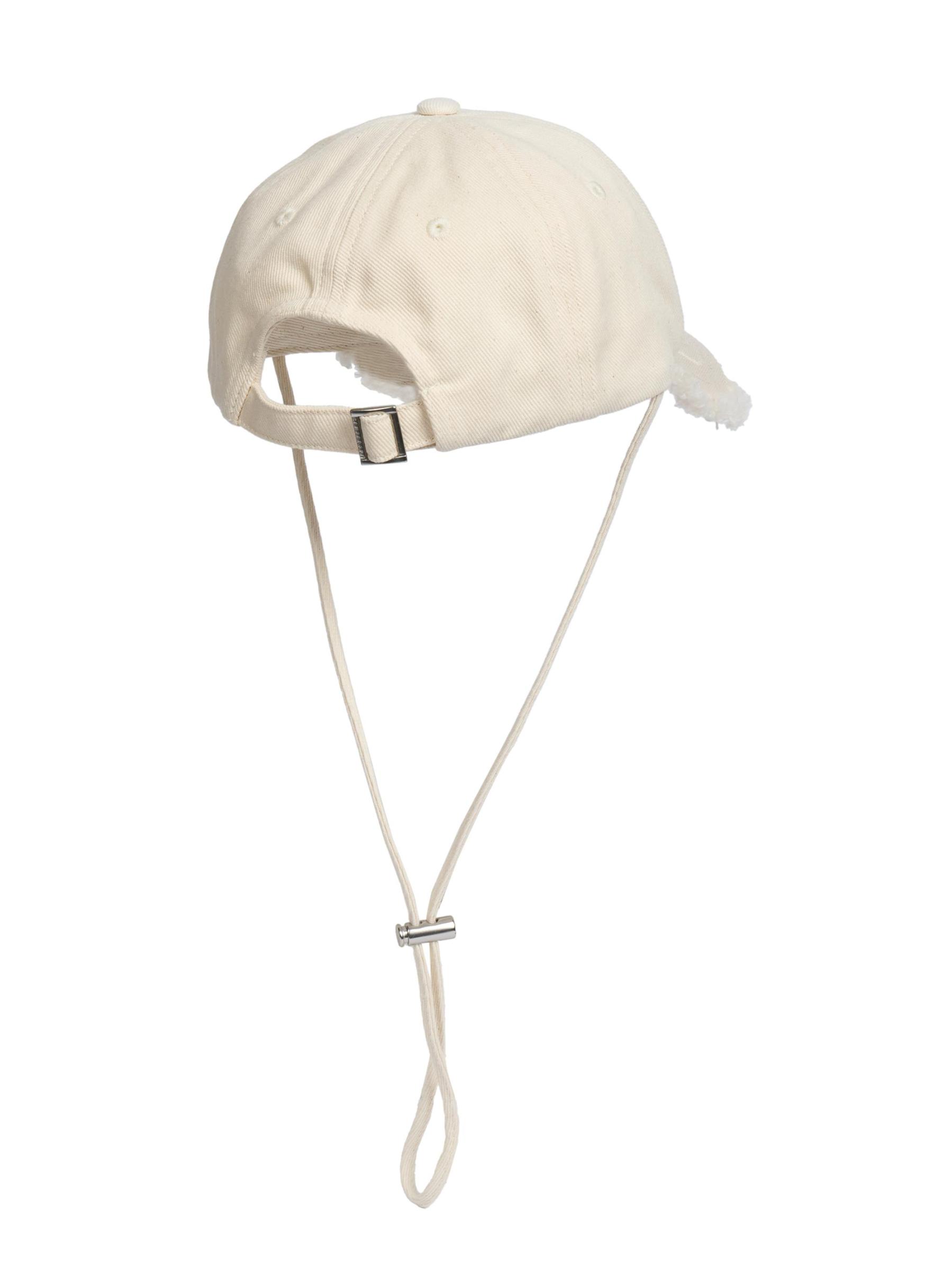 حصري. تتميز قبعة البيسبول La Casquette Artichaut من Jacquemus المصممة بحافة مهترئة بحروف شعار باللون الفضي ومشبك قابل للتعديل في الخلف.