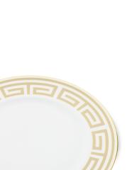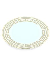 من مجموعة لابيرينتو. يتميز نمط جيو بونتي المثير للاهتمام بمجموعة متشابكة من الخطوط المستقيمة المتعرجة على سطح أواني طعام Ginori 1735، مما يشير إلى رحلة بصرية تدعو المشاهد إلى الانغماس في جمالها. يُعد طبق العشاء هذا، المصنوع يدويًا من البورسلين والذهب الأصفر عيار 18 قيراطًا، رمزًا للأناقة الجريئة.
