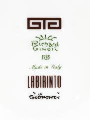 من مجموعة لابيرينتو. صُنعت هذه اللوحة المسطحة من Ginori 1735 من البورسلين الإيطالي، وتتميز بتصميم هندسي مستوحى من المتاهة.