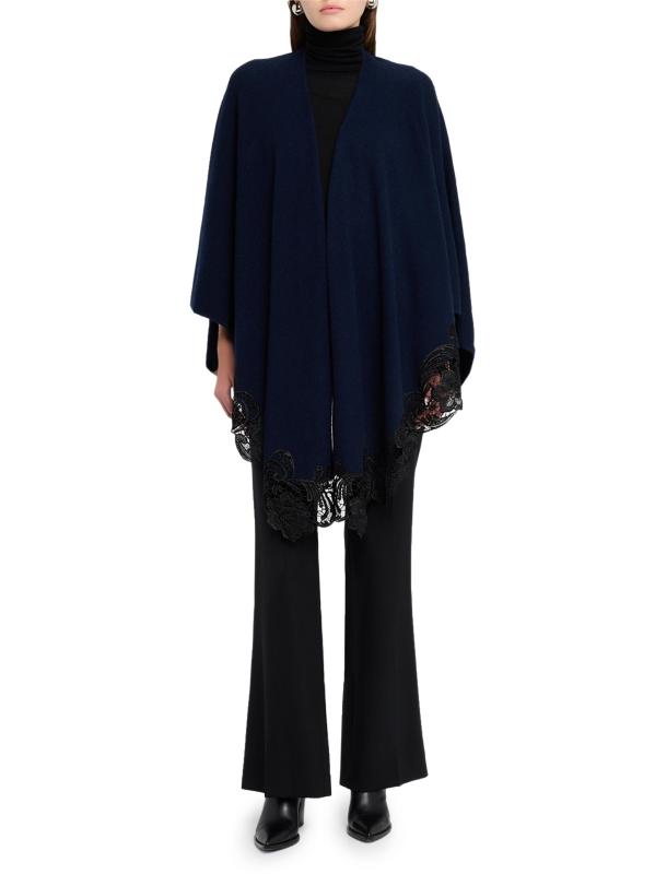 صُنع الكاب المحبوك المفتوح من الأمام من Sofia Cashmere من الكشمير ومزين بزخرفة الدانتيل.واجهة مفتوحة 100٪ كاشمير تنظيف جاف مستوردة