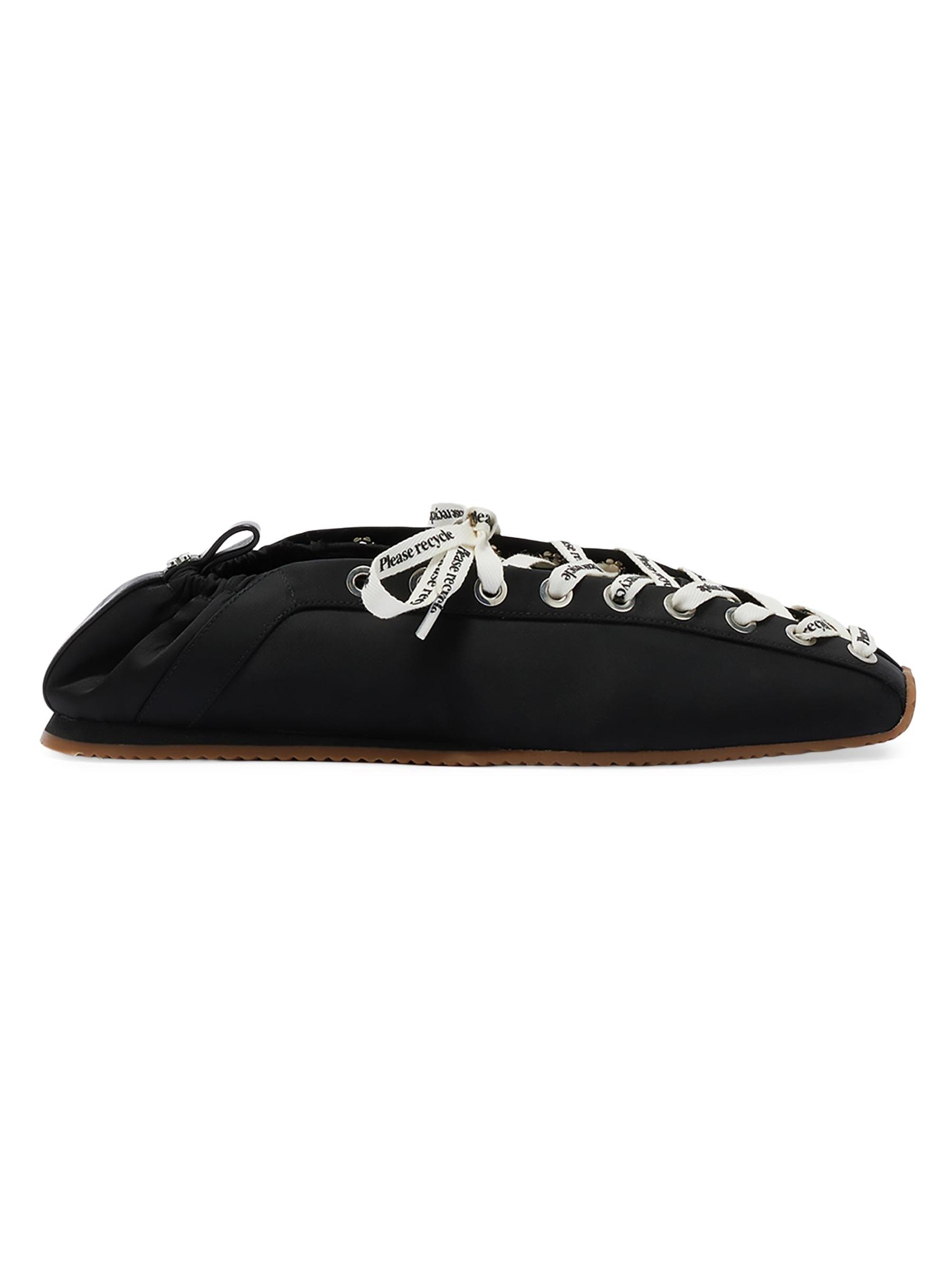 تم تصميم أحذية الباليه هذه من Ganni بظهر مطاطي لملاءمة آمنة وأربطة أمامية لإضفاء لمسة رياضية.