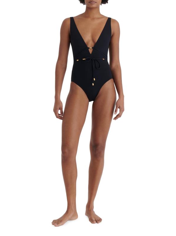 تم تصميم ملابس السباحة Lagon tank المكونة من قطعة واحدة من ERES برقبة عميقة على شكل حرف V وتفاصيل مطرزة.
