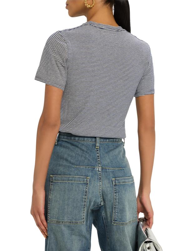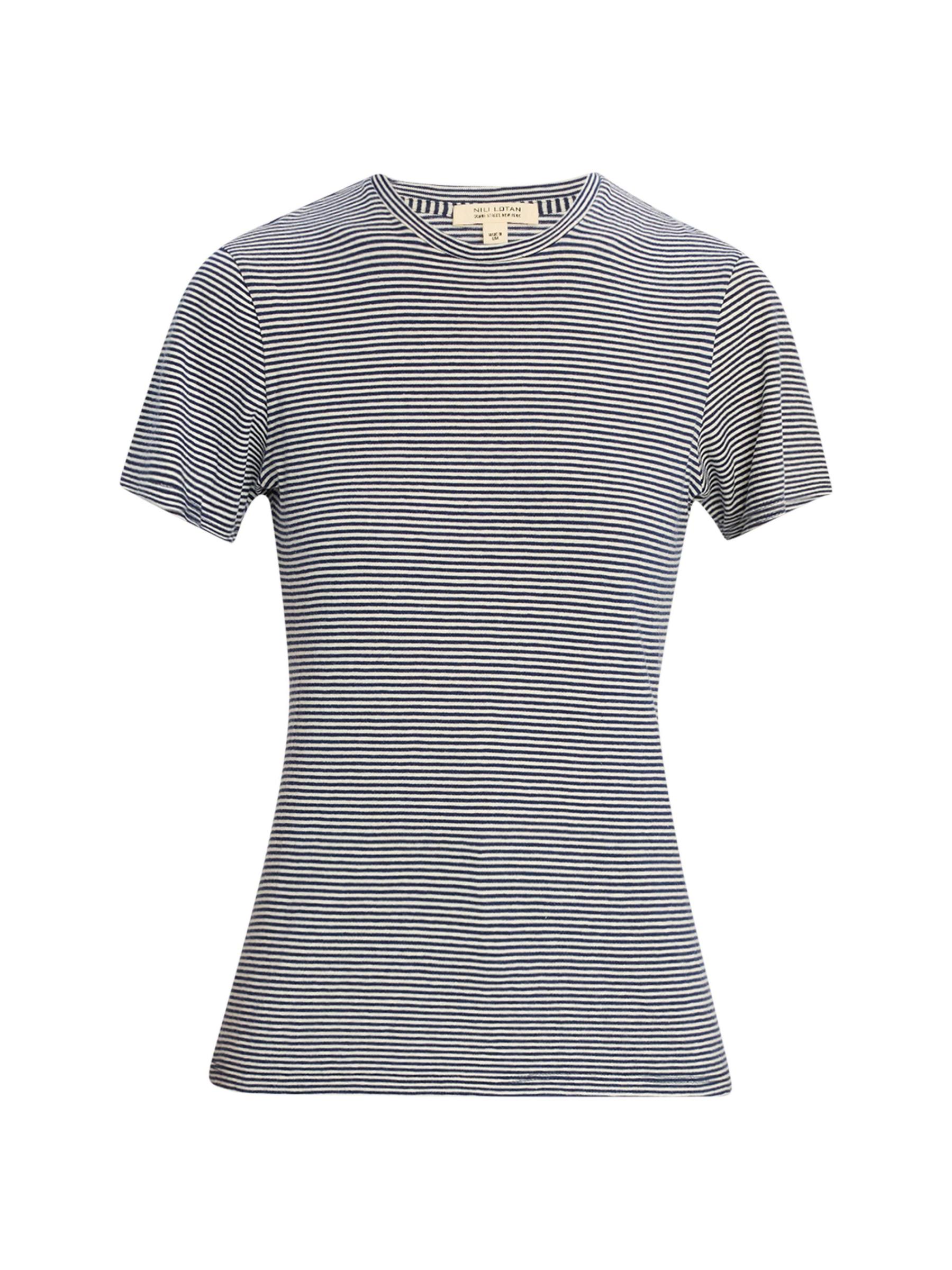 تيشيرت Lana ذو الرقبة المستديرة من Nili Lotan مصنوع من القطن الجيرسي ويتميز بتصميم مخطط كلاسيكي.رقبة مستديرة أكمام قصيرة تسحب قطن بنسبة 100% تنظيف جاف صُنع في الولايات المتحدة الأمريكية