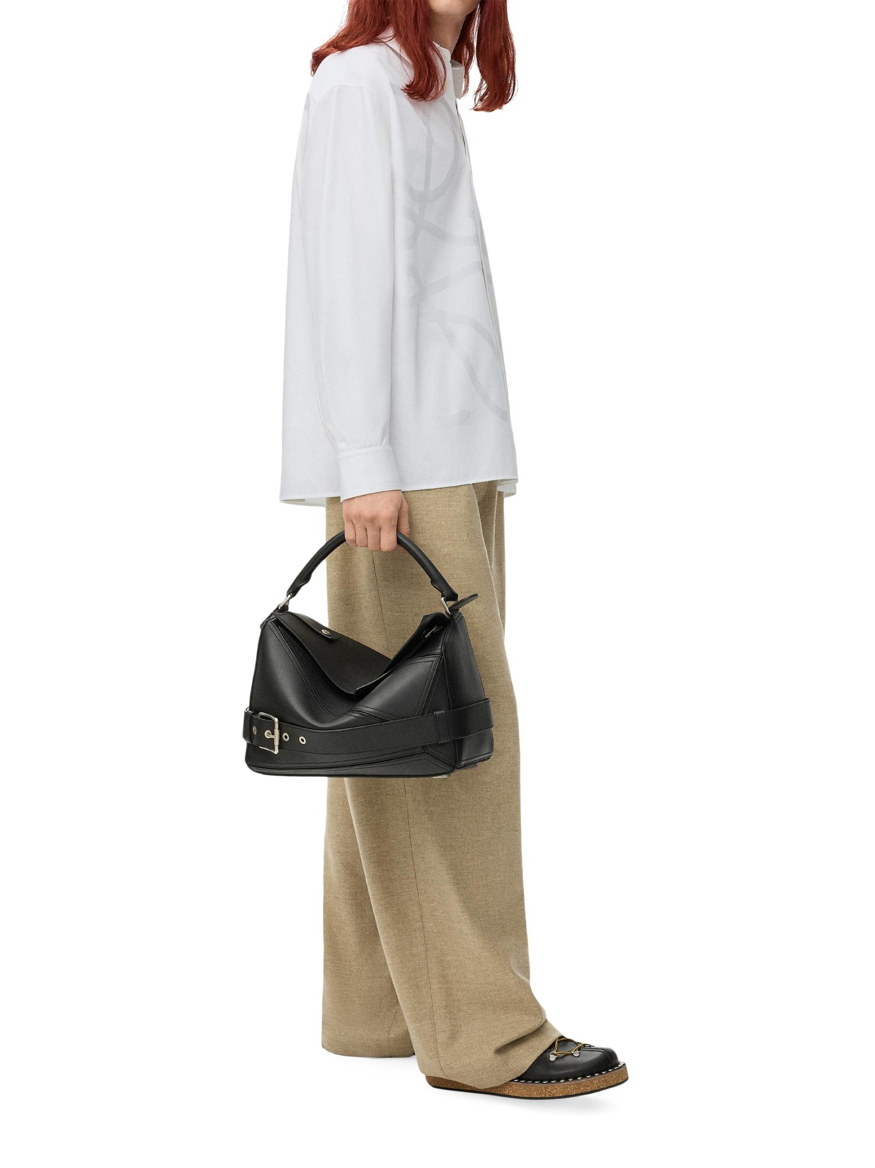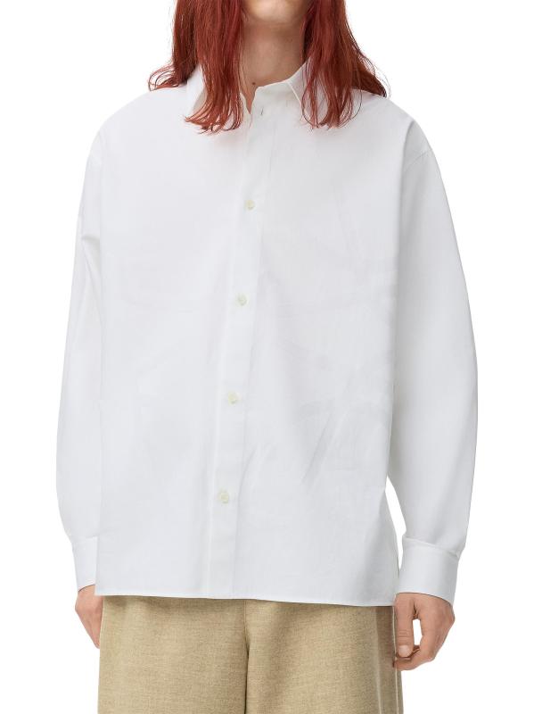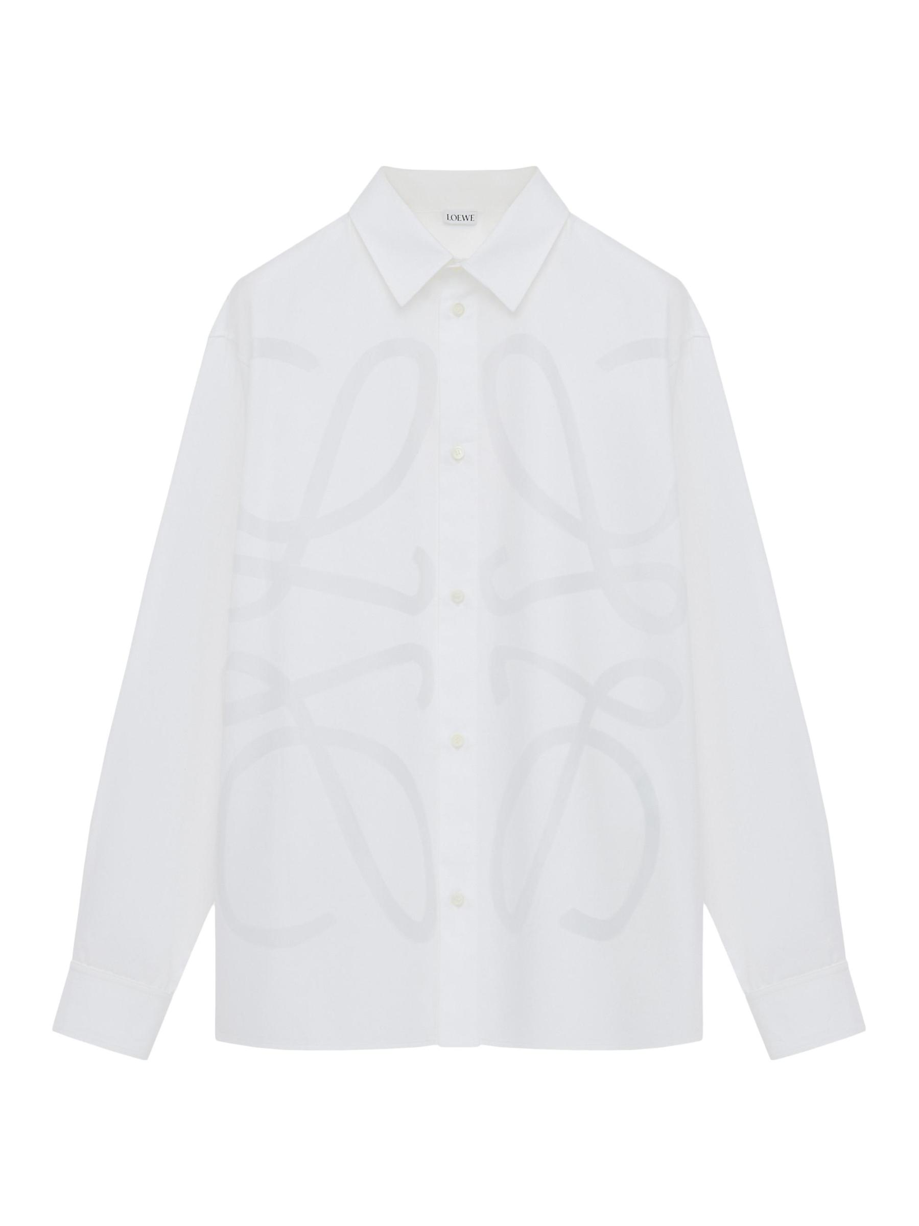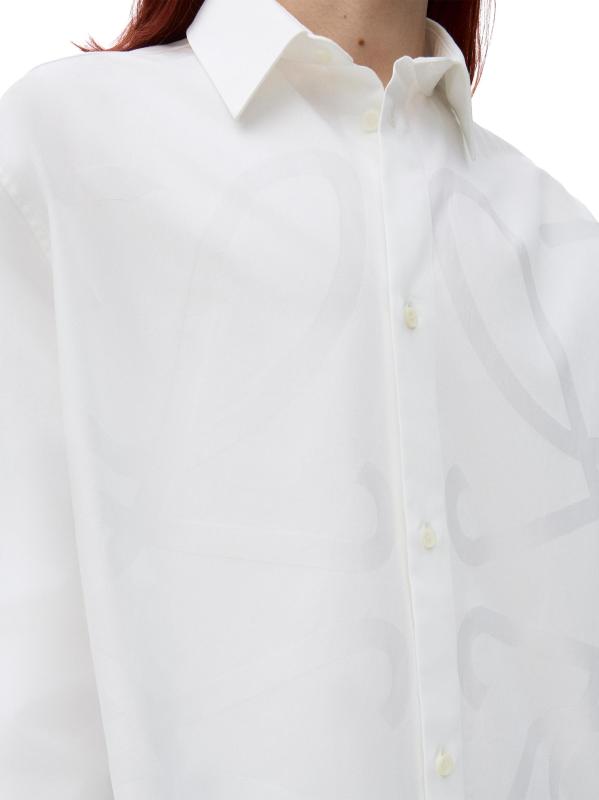 يتميز قميص LOEWE المصنوع من القطن الناعم في إيطاليا بزخرفة الجناس الكبيرة وياقة مدببة.