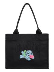 حقيبة تسوق Ganni هذه مصنوعة من القطن وتتميز بتصميم جرافيكي مع شعار مطرز وقمة مفتوحة.