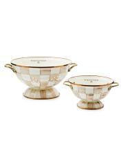 لتحضيرات المطبخ ذات الطابع الشخصي، يتميز Mocha Check Confirent من Mackenzie-Childs بفحوصات مرسومة يدويًا بلون القهوة ومقابض نحاسية عتيقة.فولاذ ثقيل/فولاذ برونزي مقاوم للصدأ غسيل يدوي مستوردة