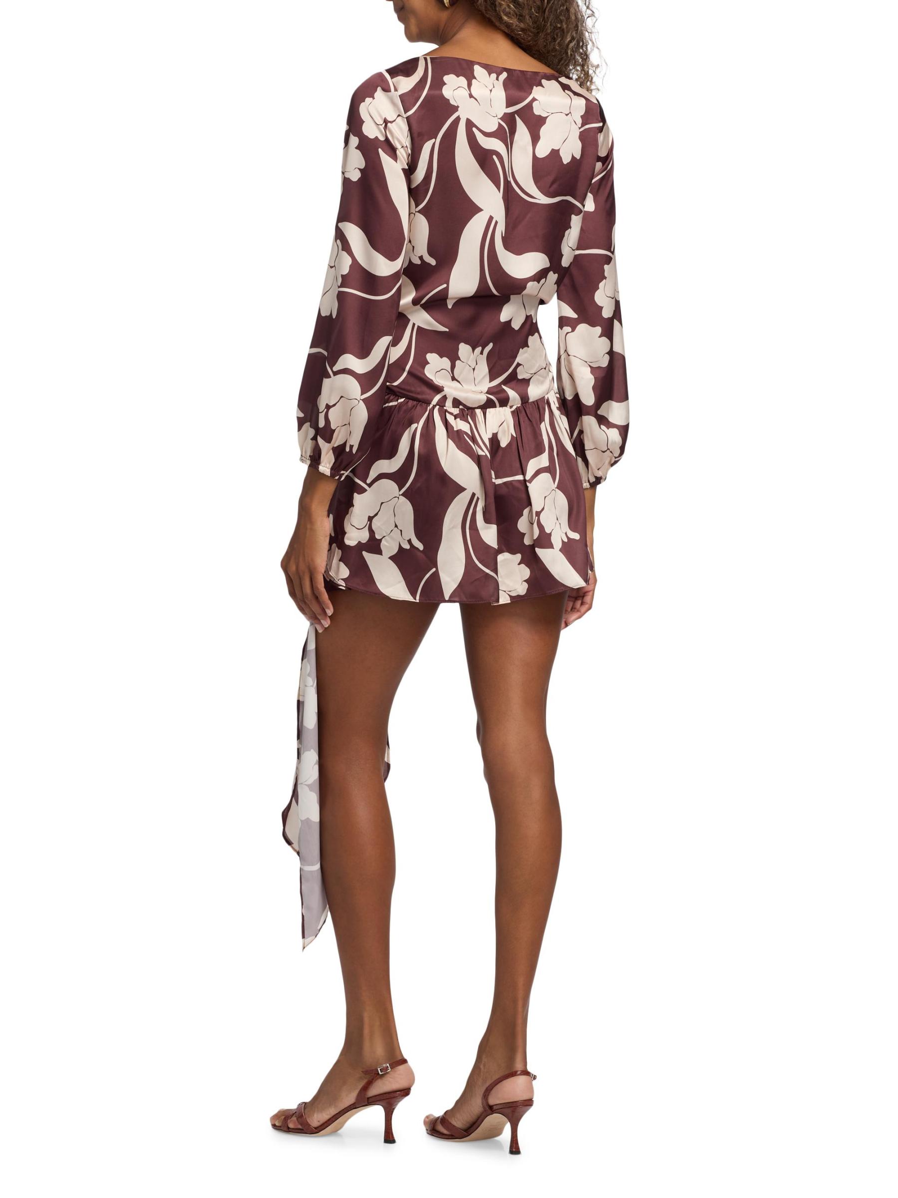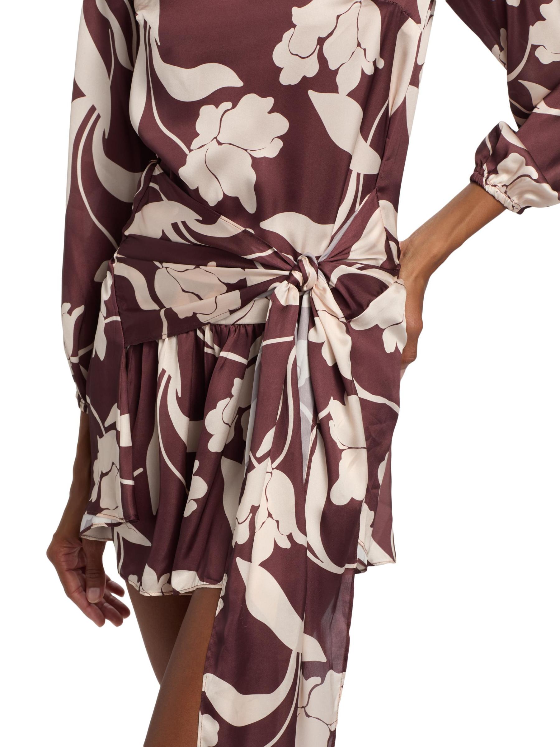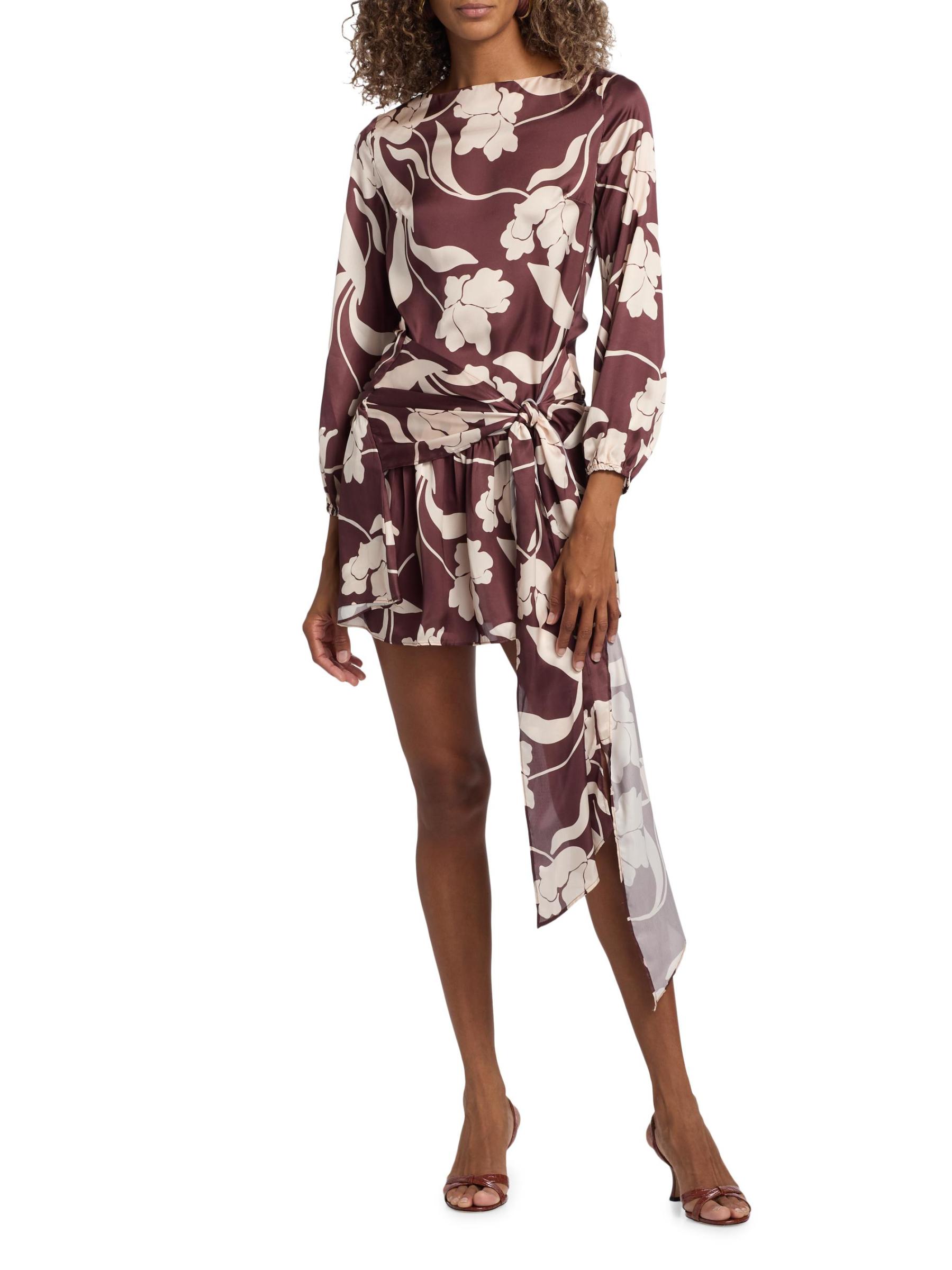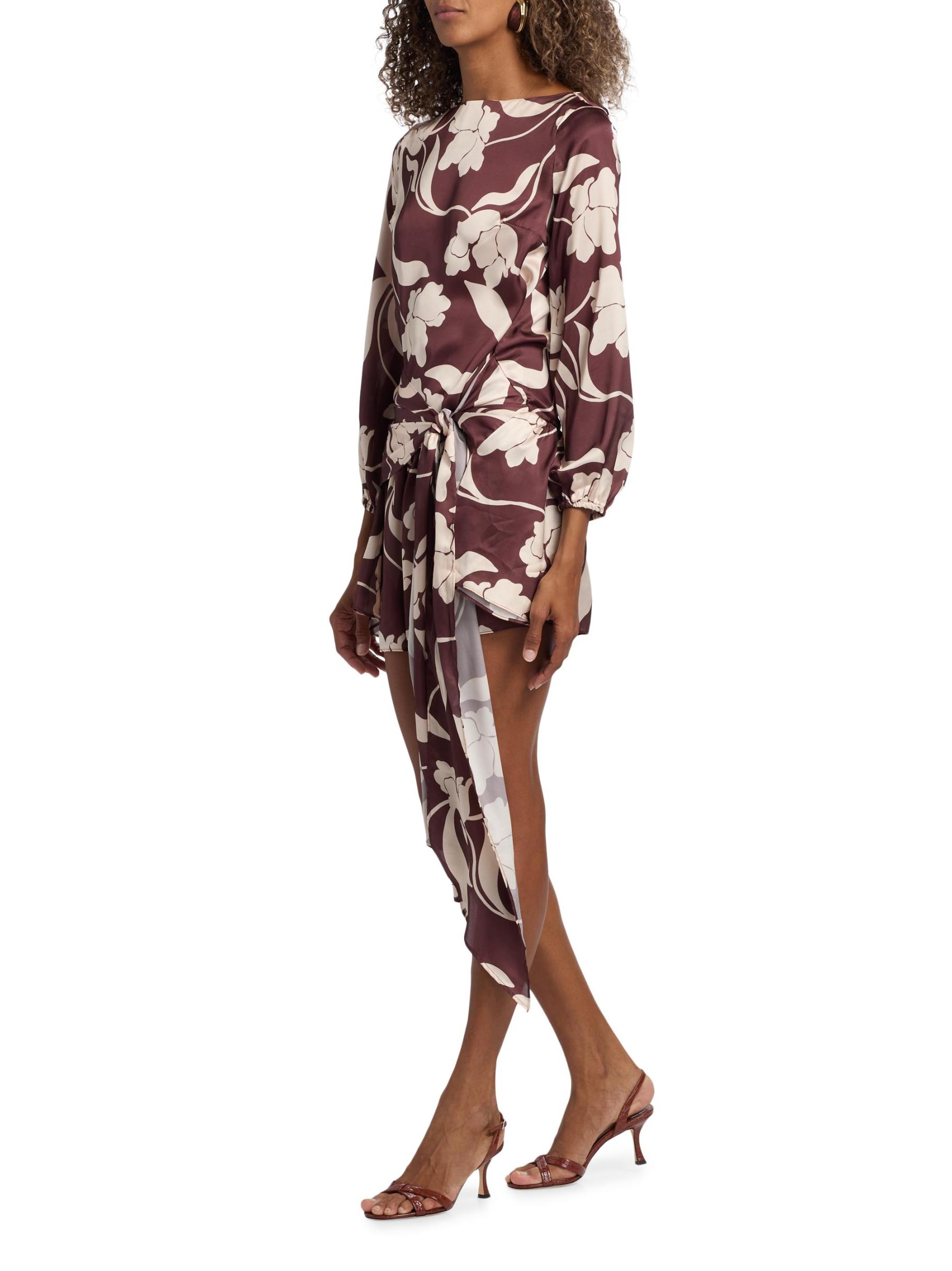 تم تصميم فستان لاريسا الصغير من ميسا لوس أنجلوس من الساتان بنقشة الأزهار. تتميز هذه القطعة ذات الأكمام الطويلة بربطة عند الخصر.