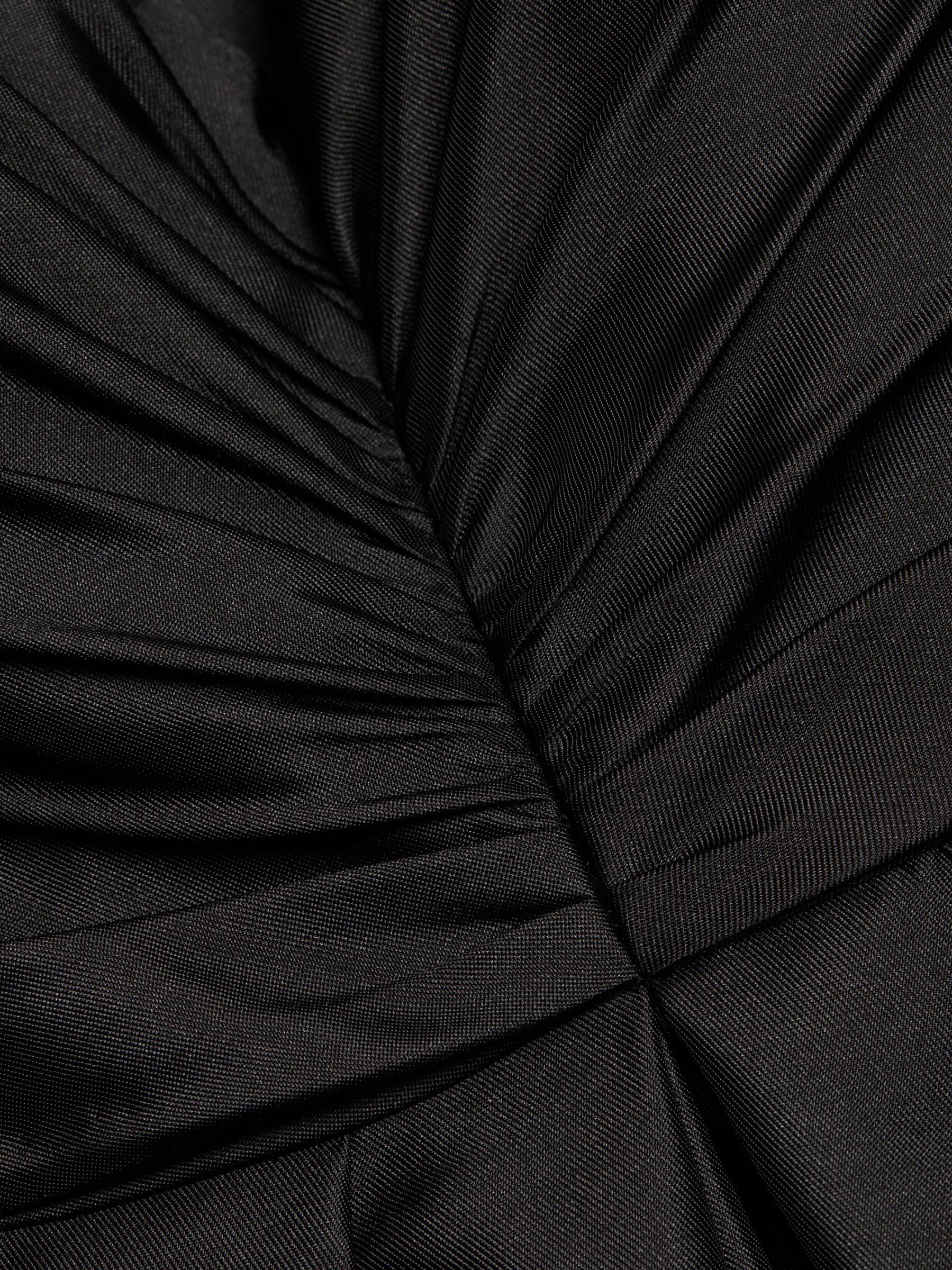 صورة ظلية على شكل حرف A حوالي 65.5 بوصة من الكتف إلى الحافة قياسات النموذج: بطول 5 أقدام و10 بوصات ترتدي العارضة مقاس 4 في الولايات المتحدة