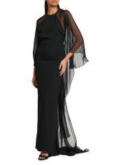 تضفي الطبقات الأنيقة من الشيفون شعورًا بالحيوية على هذا الفستان متعدد الطبقات من Alberta Ferretti. تم تصميمه بطبقة خارجية من الكاب، ويتميز بطبقات خلفية وذيل.